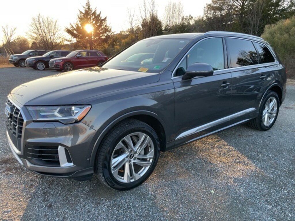 CARFAX One-Owner. Certified. Samurai Gray Metallic 2021 Audi Q7 55 Premium Plus quattro quattro 8-Speed Automatic with Tiptronic 3.0L TFSI V6 DOHC 3-Spoke Multifunction Steering Wheel w/Paddles, 3.204 Axle Ratio, AM/FM radio: SiriusXM, Ambient Interior Lighting Package, Audi Guard Cargo Mat, Audi Guard Protection Kit, Audi Phone Box w/Wireless Charging, Audi smartphone interface (Apple CarPlay/Android Auto), Automatic temperature control, Bang & Olufsen 3D Premium Sound System, Black Cloth Headliner, Convenience Package, Exterior Parking Camera Rear, Front & Rear Doors Audi Beam-Rings, Front dual zone A/C, Garage door transmitter: HomeLink, Heated Auto-Dimming Power Folding Exterior Mirrors, Heated Front Bucket Seats, Illuminated Door Sills, Navigation system: Audi MMI Navigation plus with Touch Response, Power Liftgate, Power moonroof, Premium Plus Package, Privacy Trunk Cover, Radio: Audi Sound System, Rear air conditioning, Topview Camera System, Wheels: 20" 5-Spoke Turbine-Design.
