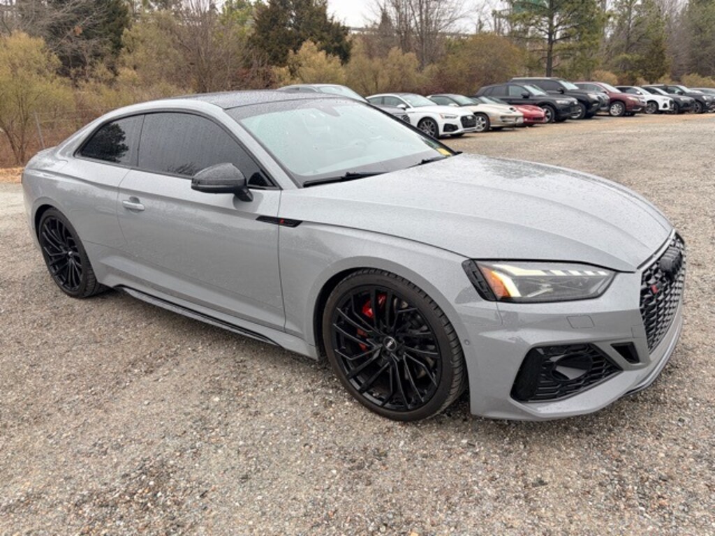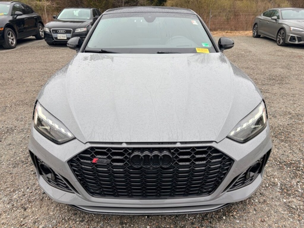 Clean CARFAX. Certified. Nardo Gray 2021 Audi RS 5 2.9T quattro quattro 8-Speed Automatic with Tiptronic 2.9L V6 Turbocharged DOHC 24V LEV3-ULEV70 444hp 19 Speakers, 3-Spoke Flat-Bottom Steering Wheel in Alcantara, Adaptive Cruise Control w/Traffic Jam Assist, All-Weather Floor Mats, AM/FM radio: SiriusXM, Audi Active Lane Assist, Audi Connect PRIME & PLUS, Audi Side Assist w/Pre-Sense Rear, Audi smartphone interface with Apple CarPlay, Automatic temperature control, Black Audi Rings & Badges, Black Optic Launch Edition, Dynamic Package, Exterior Parking Camera Rear, Front dual zone A/C, Garage door transmitter: HomeLink, Hands-On Detection Steering Wheel, Head-Up Display, Heated S Sport Front Seats, Heated steering wheel, High-Gloss Black Exterior Elements, High-Gloss Black Exterior Mirror Housings, High-Gloss Black Fr Spoiler & Rr Diffuser Trim, High-Gloss Black Roof, MMI Navigation Plus, Navigation Package, Navigation System, Park Assist, Power moonroof, Radio: Audi Sound System, Rear air conditioning, Red Brake Calipers, RS Design Package Interior w/Red Stitching, RS Driver Assistance Package, RS Sport Exhaust System w/Black Tips, RS Sport Suspension Plus w/Dynamic Ride Control, Top View Camera System, Traffic Sign Recognition, Wheels: 20" 5-Segment-Spoke-Evo High-Gloss Black.