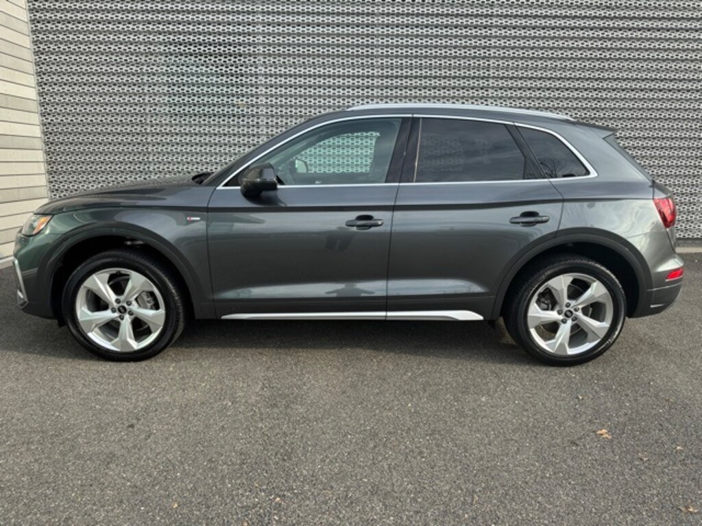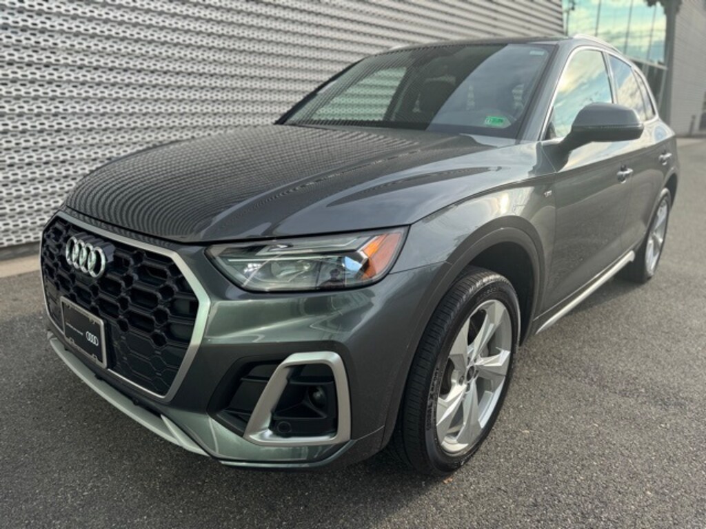 CARFAX One-Owner. Clean CARFAX. Certified. Daytona Gray Pearl Effect 2022 Audi Q5 45 S line Premium Plus quattro quattro 7-Speed Automatic S tronic 2.0L Turbocharged Black w/Leather Seating Surfaces, 5.302 Axle Ratio, ABS brakes, Adaptive Cruise Control w/Traffic Jam Assist, AM/FM radio, Audi Active Lane Assist, Audi Advanced Key, Audi Beam-Rings, Audi Connect PRIME & PLUS, Audi Guard All-Weather Floor Mats (Set of 4), Audi Phone Box, Audi Virtual Cockpit Plus, Auto-Dimming Power Folding Exterior Mirrors, Automatic temperature control, Bang & Olufsen Sound System w/3D Sound, Compass, Convenience Package, Driver Seat Memory, Electronic Stability Control, Exterior Parking Camera Rear, Front dual zone A/C, Garage door transmitter: HomeLink, Hands-On Detection Steering Wheel, Heated 8-Way Power Front Bucket Seats, Heated door mirrors, Heated front seats, Heated Steering Wheel, Illuminated entry, Leatherette Covered Center Console & Door Armrests, Low tire pressure warning, MMI Navigation Plus, Navigation Package, Navigation System, Panoramic Sunroof, Power Adjustable Steering Column, Power Liftgate, Premium Plus Package, Privacy Trunk Cover, Radio: Audi Sound System, Rear air conditioning, Rear Load Sill/Door Cup/Door Edge Paint Protection, Remote keyless entry, SiriusXM All Access Service, Top View Camera System, Traction control, Wheels: 20" 5-Arm Design.