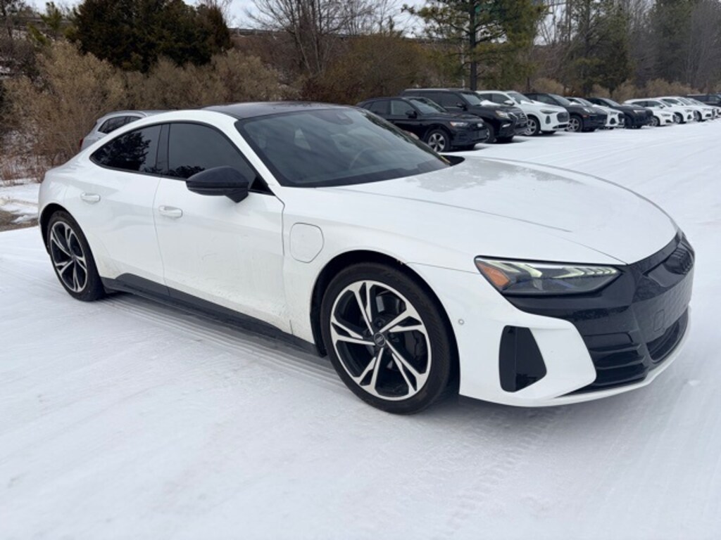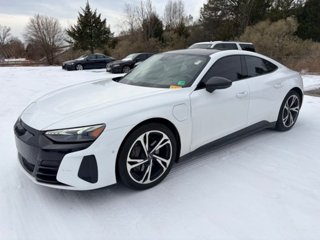 CARFAX One-Owner. Certified. Ibis White 2022 Audi e-tron GT Prestige quattro quattro 1-Speed Automatic Electric Motor Adaptive Cruise Assist w/Lane Guidance, Audi Guard All-Weather Floor Mats, Audi Guard Cargo Mat, Audi smartphone interface (Apple CarPlay/Android Auto), Auto-leveling suspension, Automatic temperature control, Bang & Olufsen 3D Premium Sound System, Black Rings & Badges Kit, Black-Optic Exterior Kit, Driver Assistance Package, Dual Pane Acoustic Side Windows, Dynamic Steering, E-Torque Vectoring Plus, Exterior Mirror Housings in Black Optic, Exterior Parking Camera Rear, Front dual zone A/C, Full Leather Interior, Full Leather Interior Package, Garage door transmitter: HomeLink, HD Matrix-Design LED Headlights, Head-Up Display, Heated Front Sport Seats, Heated Rear Seats, High Gloss Black Grille, Illuminated Aluminum Door Sills w/Audi Sport Logo, Matte Carbon Atlas Inlays, Multi-Color LED Interior Ambient & Contour Lighting, Navigation System, Perforated Fine Nappa Leather Seating Surfaces, Performance Package, Prestige Package, Radio: Audi Sound System, Rear air conditioning, Rear Wheel Steering, RS 3-Spoke Heated Multifunction Steering Wheel, Telescoping steering wheel, Top View Camera, Ventilated Front RS Sport Seats Plus, Wheels: 20" Bi-Color Black 5-Double-Spoke Design.