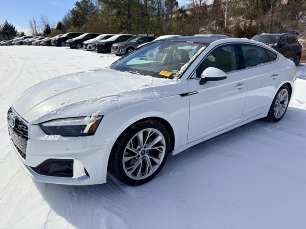 CARFAX One-Owner. Clean CARFAX. Certified. Ibis White 2023 Audi A5 Sportback Premium Plus quattro quattro 7-Speed Automatic S tronic 2.0L 4-Cylinder TFSI 2 Rear USB Charge Ports, Adaptive Cruise Control, Alarm System w/Motion Sensor, Audi Advanced Key, Audi Connect PLUS, Audi Guard All-Weather Mats, Audi Guard Cargo Mat, Audi Guard Wheel Lock Kit, Audi Phone Box, Audi Side Assist w/Pre Sense Rear, Audi Virtual Cockpit Plus, Auto-Dimming Exterior Mirrors w/Memory, Automatic temperature control, Bang & Olufsen Sound System w/3D Sound, Convenience Package, Driver Seat Memory, Exterior Parking Camera Rear, Front dual zone A/C, Garage door transmitter: HomeLink, Hands-On Detection Steering Wheel, Heated Front Bucket Seats, Heated Steering Wheel, Leatherette Covered Center Console & Door Armrests, MMI Navigation Plus, Navigation Package, Navigation System, Parking System Plus (Front/Rear Acoustic Sensors), Power Folding Exterior Mirrors, Power Liftgate, Power moonroof, Premium Plus, Rear air conditioning, Remote keyless entry, SiriusXM w/360L, Top View Camera System, Traffic Jam Assist, Wheels: 18" 5-V-Spoke-Y Design.