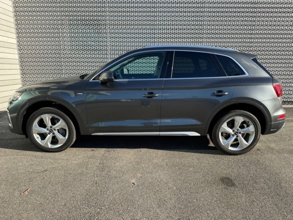CARFAX One-Owner. Certified. Daytona Gray Pearl 2023 Audi Q5 45 S line Premium Plus quattro quattro 7-Speed Automatic S tronic 2.0L Turbocharged Black w/Leather Seating Surfaces, 10 Speakers, 5.302 Axle Ratio, ABS brakes, All-Weather Floor Mats, AM/FM radio, Audi Active Lane Assist, Audi Advanced Key, Audi Beam-Rings, Audi Connect PLUS, Audi Guard Protection Kit, Audi Virtual Cockpit Plus, Auto-Dimming Power Folding Exterior Mirrors, Automatic temperature control, Bang & Olufsen Sound System w/3D Sound, Cargo Mat, Compass, Convenience Package, Driver Seat Memory, Electronic Stability Control, Exterior Parking Camera Rear, Front dual zone A/C, Garage door transmitter: HomeLink, Hands-On Detection Steering Wheel, Heated 8-Way Power Front Bucket Seats, Heated door mirrors, Heated front seats, Heated Steering Wheel, Illuminated entry, Leatherette Covered Center Console & Door Armrests, Low tire pressure warning, MMI Navigation Plus, Navigation Package, Navigation System, Panoramic Sunroof, Power Adjustable Steering Column, Power Liftgate, Premium Plus Package, Privacy Trunk Cover, Radio: Audi Sound System, Rear air conditioning, Remote keyless entry, SiriusXM w/360L, Top View Camera System, Traction control, Traffic Jam Assist, Wheels: 20" 5-Arm Design.