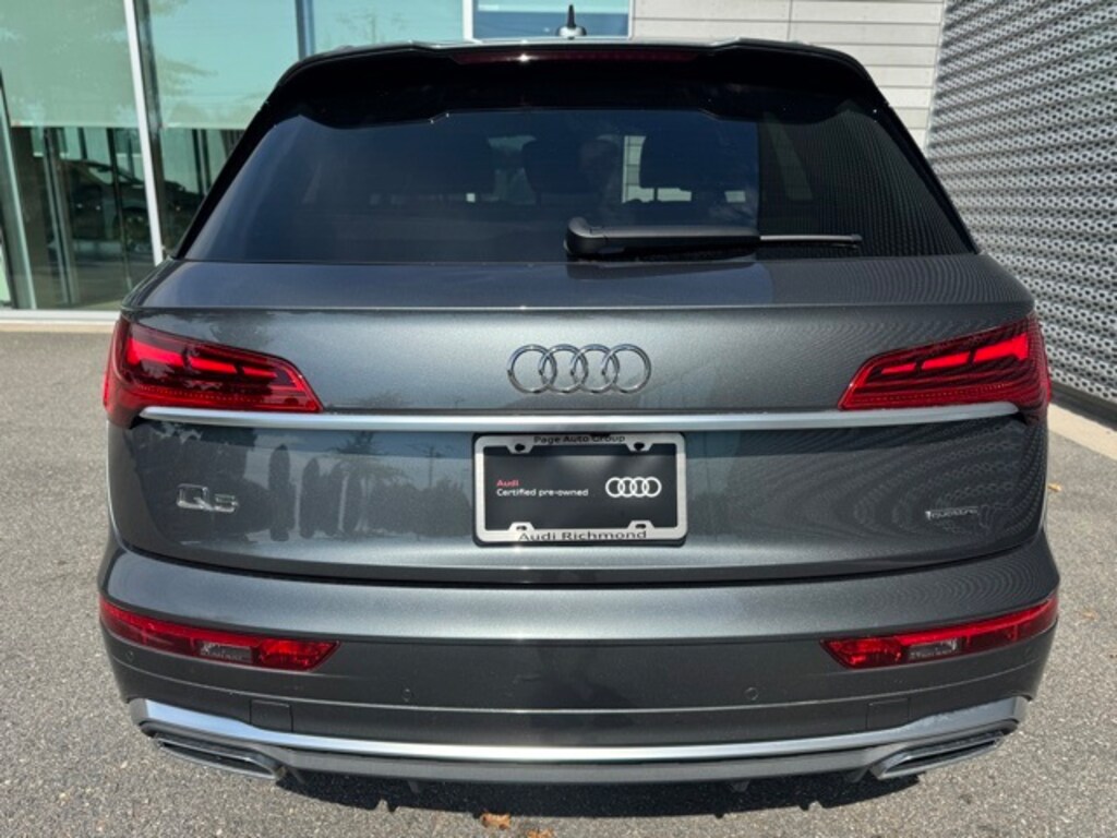 CARFAX One-Owner. Certified. Daytona Gray Pearl Effect 2023 Audi Q5 45 S line Prestige quattro quattro 7-Speed Automatic S tronic 2.0L Turbocharged Black w/Leather Seating Surfaces, 5.302 Axle Ratio, All-Weather Floor Mats, AM/FM radio, Audi Active Lane Assist, Audi Advanced Key, Audi Beam-Rings, Audi Connect PLUS, Audi Guard Protection Kit, Audi Phone Box, Audi Virtual Cockpit Plus, Auto-Dimming Power Folding Exterior Mirrors, Automatic temperature control, Bang & Olufsen Sound System w/3D Sound, Cargo Mat, Convenience Package, Driver Seat Memory, Dual Pane Acoustic Glass for Front Side Windows, Exterior Parking Camera Rear, Front dual zone A/C, Garage door transmitter: HomeLink, Gray-Brown Birch Natural Wood Inlays, Hands-On Detection Steering Wheel, Head-Up Display, Heated 8-Way Power Front Bucket Seats, Heated front seats, Heated Rear Seats, Heated Steering Wheel, Leatherette Covered Center Console & Door Armrests, LED Interior Lighting Plus Package, Manual Rear Side Window Sunshades, Matrix-Design LED Headlights w/Headlight Washers, MMI Navigation Plus, Navigation Package, Navigation System, Panoramic Sunroof, Park Assist, Power Adjustable Steering Column, Power Liftgate, Prestige Package, Privacy Trunk Cover, Radio: Audi Sound System, Rear air conditioning, SiriusXM w/360L, Top View Camera System, Traffic Jam Assist, Traffic Sign Recognition, Ventilated Front Sport Seats w/4-Way Power Lumbar, Warm Weather Package, Wheels: 20" 5-Arm Design.