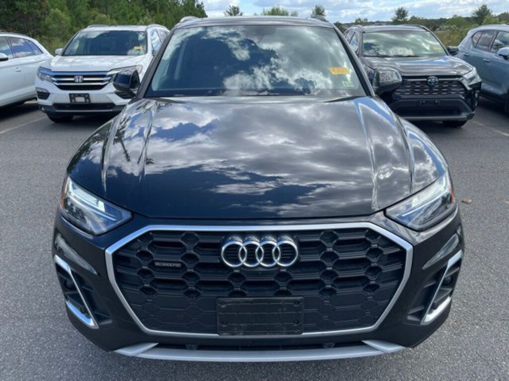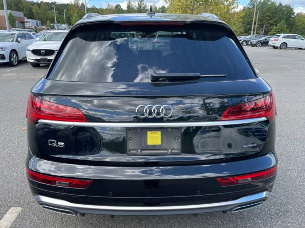 CARFAX One-Owner. Clean CARFAX. Certified. Mythos Black Metallic 2023 Audi Q5 45 S line Premium Plus quattro quattro 7-Speed Automatic S tronic 2.0L Turbocharged Black w/Leather Seating Surfaces, 5.302 Axle Ratio, ABS brakes, AM/FM radio, Audi Active Lane Assist, Audi Advanced Key, Audi Beam-Rings, Audi Guard All-Weather Floor Mats (Set of 4), Audi Virtual Cockpit Plus, Auto-Dimming Power Folding Exterior Mirrors, Automatic temperature control, Bang & Olufsen Sound System w/3D Sound, Compass, Convenience Package, Driver Seat Memory, Electronic Stability Control, Exterior Parking Camera Rear, Front dual zone A/C, Garage door transmitter: HomeLink, Hands-On Detection Steering Wheel, Heated 8-Way Power Front Bucket Seats, Heated door mirrors, Heated front seats, Heated Steering Wheel, Illuminated entry, Leatherette Covered Center Console & Door Armrests, Low tire pressure warning, Panoramic Sunroof, Power Adjustable Steering Column, Power Liftgate, Premium Plus Package, Privacy Trunk Cover, Radio: Audi Sound System, Rear air conditioning, Remote keyless entry, SiriusXM w/360L, Top View Camera System, Traction control, Traffic Jam Assist, Wheels: 19" 5-Double-Arm Design Bi-Color Finish.