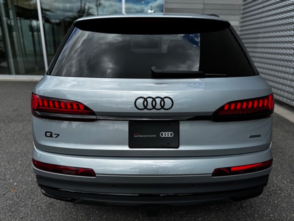 CARFAX One-Owner. Clean CARFAX. Certified. Satellite Silver Metallic 2023 Audi Q7 55 Prestige quattro quattro 8-Speed Automatic with Tiptronic 3.0L TFSI 3.204 Axle Ratio, 4-Zone Automatic Climate Control, Adaptive Cruise Assist w/Lane Guidance, Audi Beam Rings, Audi Guard All-Weather Mats, Audi Phone Box w/Wireless Charging, Automatic temperature control, Bang & Olufsen Premium Sound System w/3D Sound, Black Audi Rings & Badges, Black Cloth Headliner, Black Optic Package, Comfort Adaptive Air Suspension, Contour/Ambient LED Interior Lighting Package, Convenience Package, Dual-Pane Acoustic Glass for Side Windows, Dynamic Center Caps, Executive Package, Exterior Parking Camera Rear, Front dual zone A/C, Front Seats w/Ventilation, Garage door transmitter: HomeLink, Gray/Brown Fine Grain Ash Natural Wood Inlays, Head-Up Display, Heated Front Bucket Seats, Heated Rear Seats, Heated Steering Wheel, Illuminated Door Sills, Intersection Assist, Navigation system: Audi MMI Navigation plus with Touch Response, Power Liftgate, Power moonroof: Panoramic, Power Soft-Closing Doors, Prestige Package, Privacy Trunk Cover, Radio: Audi Sound System, Rear air conditioning, Rear Door/Side Windows & Tailgate Sunshades, Remote Park Assist Plus, Topview Camera System, Tow Hitch Receiver, Towing Package, Traffic Sign Recognition, Wheels: 22" 5-V-Spoke Star Design.