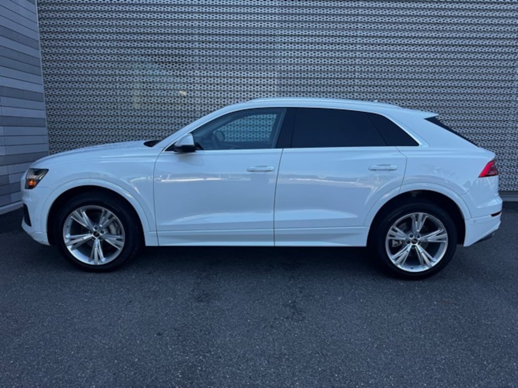 CARFAX One-Owner. Clean CARFAX. Certified. Carrara White 2023 Audi Q8 55 Premium quattro quattro 8-Speed Automatic with Tiptronic 3.0L V6 Turbocharged DOHC 24V LEV3-ULEV70 335hp 10 Speakers, AM/FM radio: SiriusXM, Audi Adaptive Cruise Assist w/Lane Guidance, Audi Phone Box w/Wireless Charging, Automatic temperature control, Convenience Package, Exterior Parking Camera Rear, Front dual zone A/C, Garage door transmitter: HomeLink, Heated Front Bucket Seats, Heated Steering Wheel, Navigation system: Audi MMI Navigation plus with Touch Response, Power Liftgate, Power moonroof: Panoramic, Radio: Audi MMI Nav Plus w/MMI Touch Response, Rear air conditioning, Top View Camera System, Wheels: 21" 5-Segment-Spoke Design.