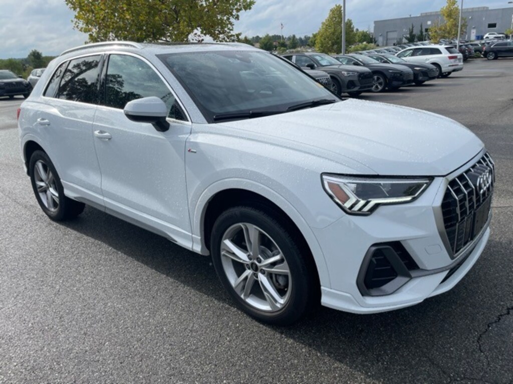 CARFAX One-Owner. Clean CARFAX. Certified. Glacier White Metallic 2024 Audi Q3 Premium S Line quattro quattro 8-Speed Automatic with Tiptronic 2.0L 4-Cylinder TFSI 10 Speakers, 19" Wheel Package, 3.53 Axle Ratio, Alarm w/Motion Sensor, AM/FM radio, Audi Advanced Key, Audi Beam-Rings, Audi Guard Protection Kit, Audi smartphone interface (Apple CarPlay/Android Auto), Auto-Dimming Power-Folding Exterior Mirrors, Auto-Dimming Rear-View Mirror, Automatic temperature control, Convenience Package, Driver Seat Memory, Exterior Parking Camera Rear, Front dual zone A/C, Garage Door Opener (HomeLink), Heated Front Bucket Seats, LED Interior Lighting Package, Power Liftgate, Power moonroof: Panoramic, Radio: Audi Sound System, Rear air conditioning, SiriusXM, Wheels: 19" 5-Double-Spoke Dynamic Design, Wireless Phone Charging Pad.