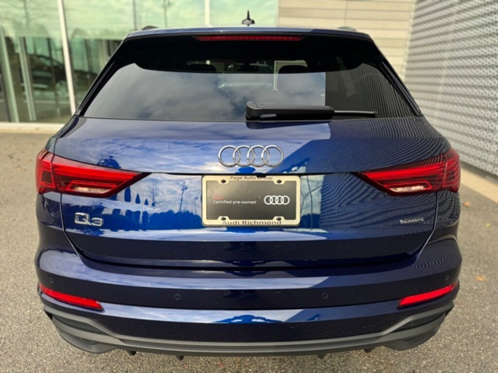Certified. Navarra Blue Metallic 2024 Audi Q3 Premium Plus S Line quattro quattro 8-Speed Automatic with Tiptronic 2.0L 4-Cylinder TFSI 12.3" Audi Virtual Cockpit Plus Screen, 3.53 Axle Ratio, Alarm w/Motion Sensor, Alexa Integration, Audi Advanced Key, Audi Connect NAV & PLUS, Audi MMI Navigation Plus, Auto-Dimming Power-Folding Exterior Mirrors, Auto-Dimming Rear-View Mirror, Automatic temperature control, Black Exterior Trim, Black Optic Sport Package, Black Roof Rails, Convenience Package, Driver Seat Memory, Exterior Parking Camera Rear, Front dual zone A/C, Garage Door Opener (HomeLink), Heated Front Bucket Seats, LED Interior Lighting Package, LED Interior Lighting Plus Package, Navigation System, Power Liftgate, Power moonroof: Panoramic, Premium Plus Package, Radio: Audi Sound System, Rear air conditioning, SiriusXM, SiriusXM w/360L, Sonos Premium Sound System w/3D Sound, Sport Front Seats, Technology Package, Top View Camera System, Wheels: 19" 5-Double-Arm Design, Wireless Apple CarPlay/Android Auto, Wireless Phone Charging Pad.