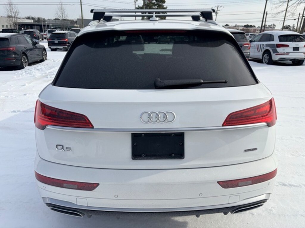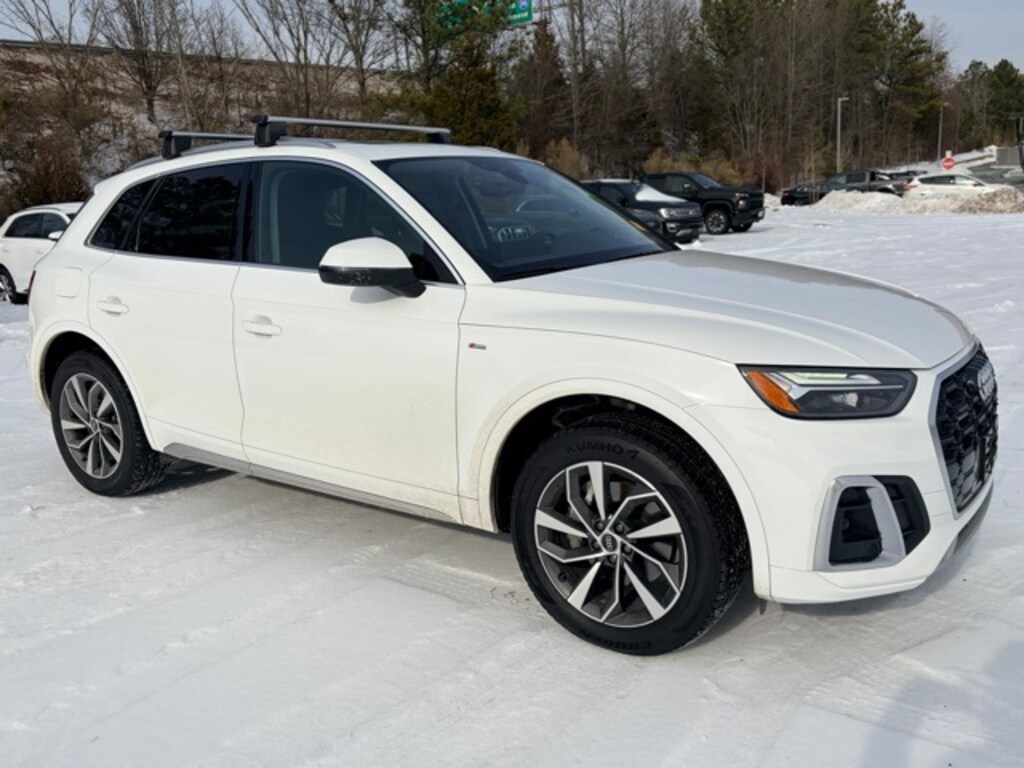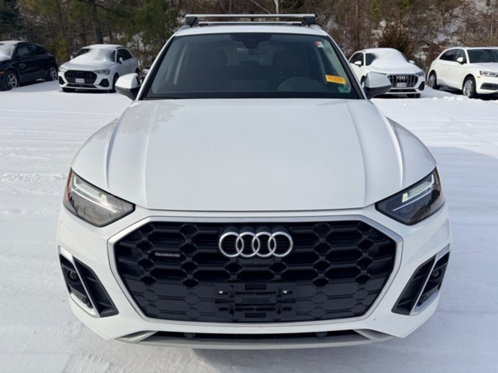 Clean CARFAX. Certified. Arkona White 2024 Audi Q5 45 S line Premium Plus quattro quattro 7-Speed Automatic S tronic 2.0L Turbocharged Black w/Leather Seating Surfaces, AM/FM radio, Audi Advanced Key, Audi Virtual Cockpit Plus, Auto-Dimming Power Folding Exterior Mirrors, Automatic temperature control, Bang & Olufsen Sound System w/3D Sound, Convenience Package, Driver Seat Memory, Exterior Parking Camera Rear, Front dual zone A/C, Garage door transmitter: HomeLink, Heated 8-Way Power Front Bucket Seats, Heated steering wheel, Leatherette Covered Center Console & Door Armrests, Panoramic Sunroof, Power Adjustable Steering Column, Power Liftgate, Premium Plus Package, Radio: Audi Sound System, Rear air conditioning, SiriusXM w/360L, Top View Camera System, Wheels: 19" 5-Double-Arm Design Bi-Color Finish.