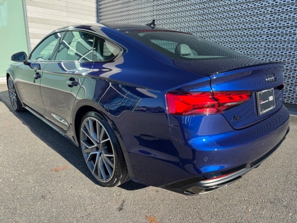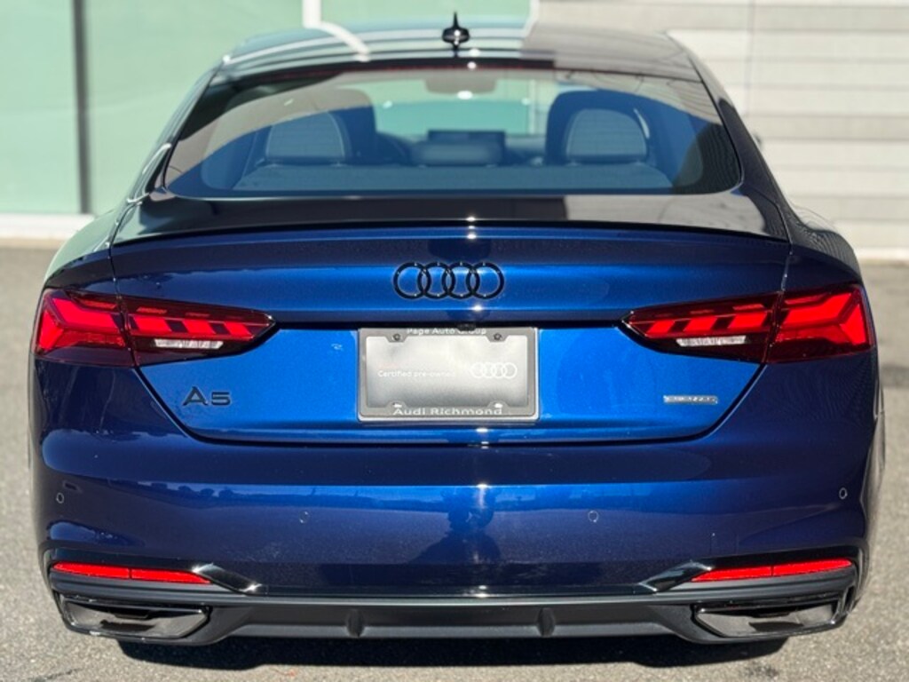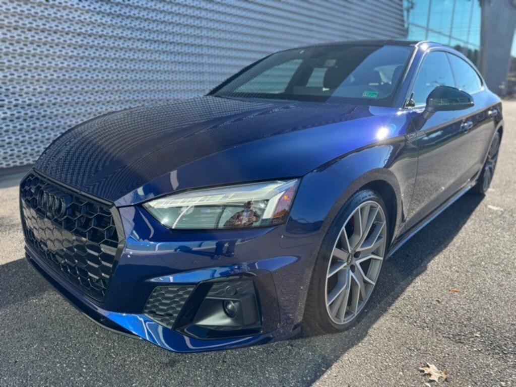 CARFAX One-Owner. Certified. Navarra Blue Metallic 2025 Audi A5 Sportback 45 S line Premium Plus quattro quattro 7-Speed Automatic S tronic 2.0L 4-Cylinder TFSI Alarm System with Motion Sensor, AM/FM radio, Audi Advanced Key, Audi Beam-Rings (4 Rings), Audi Connect NAV and PLUS, Audi MMI Navigation Plus, Audi Side Assist with Pre Sense Rear, Audi Virtual Cockpit Plus, Auto-Dimming Power Folding Exterior Mirrors, Automatic temperature control, Bang & Olufsen Sound System with 3D Sound, Black Fender Elements, Black Mirror Housings, Black Rear Lip Spoiler, Dark Chrome Exhaust Tips, Exterior Parking Camera Rear, Front dual zone A/C, Garage door transmitter: HomeLink, Heated Front Sport Seats, Heated steering wheel, Leather/Dinamica Seating Surfaces, Leatherette Covered Center Console and Door Armrests, LED Interior Lighting Plus Package, Memory For Driver's Seat, Navigation System, Power Liftgate, Power moonroof, Premium Plus, Radio: Audi Sound System, Rear air conditioning, Red Brake Calipers, RS Carbon Inlays, S Line Plus Package, SiriusXM with 360L, Stainless Steel Pedal Caps, Top View Camera System, Traffic Sign Recognition, Wheels: 20" 5-V-Spoke-Star Design, Wireless Phone Charging Pad.
