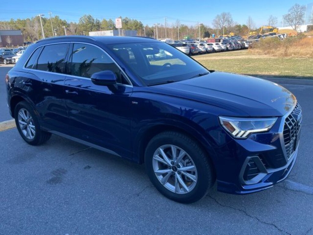 CARFAX One-Owner. Clean CARFAX. Certified. Navarra Blue Metallic 2025 Audi Q3 Premium Plus S Line quattro quattro 8-Speed Automatic with Tiptronic 2.0L 4-Cylinder TFSI 12.3" Audi Virtual Cockpit Plus Screen, ABS brakes, Active Cruise Control, Alarm with Motion Sensor, Alexa Integratio, AM/FM radio, Audi Advanced Key, Audi Beam-Rings, Audi Connect NAV and PLUS, Audi Guard All-Weather Mats, Audi MMI Navigation Plus, Audi smartphone interface (Apple CarPlay/Android Auto), Auto-Dimming Power-Folding Exterior Mirrors, Auto-Dimming Rear-View Mirror, Automatic temperature control, Brown Gray Natural Wood Inlay, Convenience Package, Driver Seat Memory, Electronic Stability Control, Exterior Parking Camera Rear, Front dual zone A/C, Garage Door Opener (HomeLink), Heated door mirrors, Heated Front Bucket Seats, Heated front seats, Illuminated entry, LED Interior Lighting Package, LED Interior Lighting Plus Package, Low tire pressure warning, Navigation System, Power Liftgate, Power moonroof: Panoramic, Premium Plus Package, Rear air conditioning, Remote keyless entry, SiriusXM with 360L, SiriusXM with 360L (3 Months Trial), SONOS Premium Sound System with 3D Sound, Technology Package, Top View Camera System, Traction control, Traffic Sign Recognition, Wheels: 18" 5-V-Spoke-S Design, Wireless Apple CarPlay/Android Auto, Wireless Phone Charging Pad.