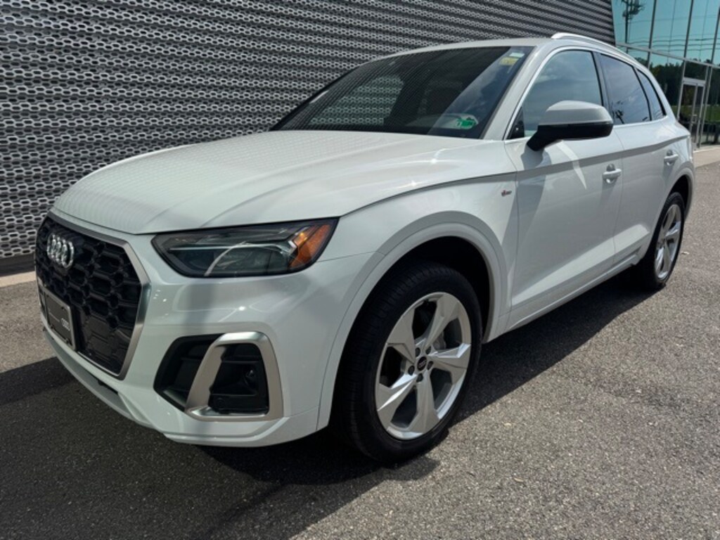CARFAX One-Owner. Clean CARFAX. Certified. Glacier White Metallic 2025 Audi Q5 45 S line Premium Plus quattro quattro 7-Speed Automatic S tronic 2.0L Turbocharged Okapi Brown w/Leather Seating Surfaces, ABS brakes, Active Cruise Control, Audi Beam-Rings, Audi Guard All-Weather Floor Mats, Audi Virtual Cockpit Plus, Automatic temperature control, Bang & Olufsen 3D Sound System, Compass, Driver Seat Memory, Electronic Stability Control, Exterior Parking Camera Rear, Front dual zone A/C, Garage door transmitter: HomeLink, Heated door mirrors, Heated front seats, Heated Front Sport Seats, Heated steering wheel, Illuminated entry, Leatherette Covered Center Console & Door Armrests, LED Interior Lighting Plus Package, Low tire pressure warning, Manual Rear Side Window Shades, Navigation System, Panoramic Sunroof, Power Adjustable Steering Column, Power Folding Auto-Dim Exterior Mirrors w/Memory, Power Liftgate, Premium Plus Package, Radio: MMI Navigation Plus, Remote keyless entry, SiriusXM w/360L, Top View Camera System, Traction control, Traffic Sign Recognition, Ventilated Front Seats, Warm Weather Package, Wheels: 20" 5-Arm Design.