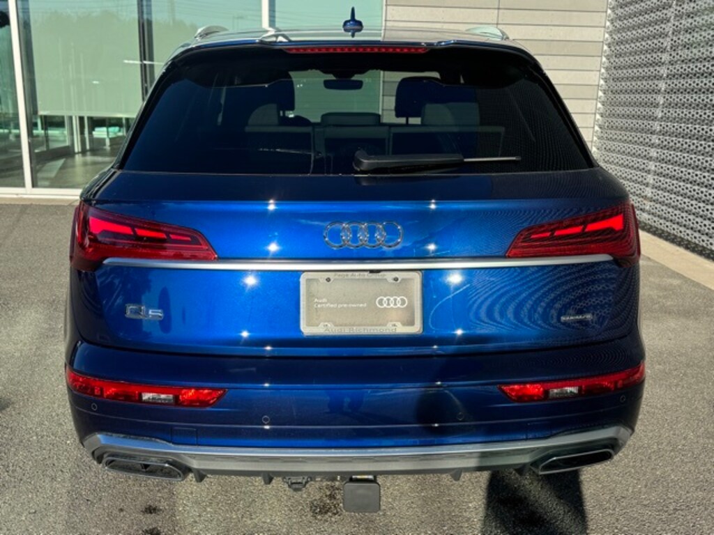 CARFAX One-Owner. Clean CARFAX. Certified. Navarra Blue Metallic 2025 Audi Q5 45 S line Premium Plus quattro quattro 7-Speed Automatic S tronic 2.0L Turbocharged Rock Gray w/Leather Seating Surfaces, ABS brakes, Active Cruise Control, Alloy Wheels, AM/FM radio, Audi Beam-Rings, Audi Virtual Cockpit Plus, Automatic temperature control, Bang & Olufsen 3D Sound System, Compass, Driver Seat Memory, Electronic Stability Control, Exterior Parking Camera Rear, Front dual zone A/C, Garage door transmitter: HomeLink, Heated door mirrors, Heated front seats, Heated Front Sport Seats, Heated steering wheel, Illuminated entry, Leatherette Covered Center Console & Door Armrests, LED Interior Lighting Plus Package, Low tire pressure warning, Manual Rear Side Window Shades, Navigation System, Panoramic Sunroof, Power Adjustable Steering Column, Power Folding Auto-Dim Exterior Mirrors w/Memory, Power Liftgate, Premium Plus Package, Privacy Trunk Cover, Radio: MMI Navigation Plus, Rear air conditioning, Remote keyless entry, SiriusXM w/360L, Top View Camera System, Traction control, Traffic Sign Recognition, Ventilated Front Seats, Warm Weather Package, Wheels: 19" 5-Double-Arm Design Bi Color Finish.