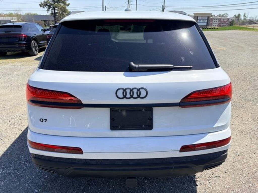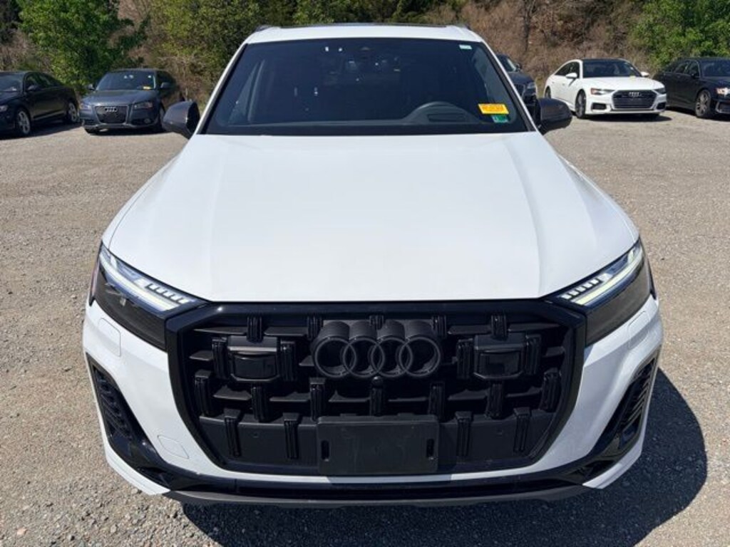 CARFAX One-Owner. Clean CARFAX. Certified. Glacier White Metallic 2025 Audi Q7 55 Prestige quattro quattro 8-Speed Automatic with Tiptronic 3.0L TFSI 10 Speakers, 7-Pin Adapter, AM/FM radio: SiriusXM w/360L, Animation For Headlights and Taillights, Anthracite Gray Audi Rings, Audi Beam Rings, Audi Guard Protection Kit, Automatic temperature control, Bang & Olufsen Premium Sound System with 3D Sound, Black Door Blades, Black Exterior Trim, Black Grille, Black Optic Package, Black Roof Rails, Black Window Surrounds, Carbon Fiber Mirror Caps, Comfort Adaptive Air Suspension, Control Buttons in Gloss Black with Haptic Feedback, Convenience Package, Dark Chrome Exhaust Tips, Dual-Pane Acoustic Glass For Side Windows, Executive Plus Package, Exterior Parking Camera Rear, Four-Zone Automatic Climate Control, Front dual zone A/C, Front Passenger Memory Seat Function, Front Seats with Ventilation, Garage door transmitter: HomeLink, HD Matrix-Design LED Headlights with Audi Laser Light, Head-Up Display, Headlight Washer System, Heated Rear Seats, Heated Steering Wheel, Illuminated Door Sills, Individual Contour Front Seats, Intersection Assist, LED Interior Lighting Package Plus, Massage Function For Front Seats, Navigation system: Audi MMI Navigation plus with Touch Response, Power Liftgate, Power moonroof: Panoramic, Power Soft-Closing Doors, Prestige Package, Privacy Trunk Cover, Radio: Audi Sound System, Rear air conditioning, Rear Door/Side Windows and Tailgate Sunshades, Remote Park Assist Plus, Top View Camera System, Traffic Sign Recognition, Trailer Hitch, Valcona/Cricket Leather Seat Trim, Wheels: 22" 5-V-Spoke Star Design.