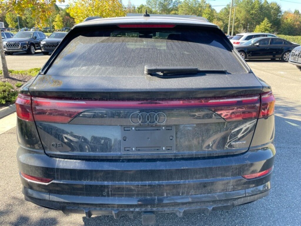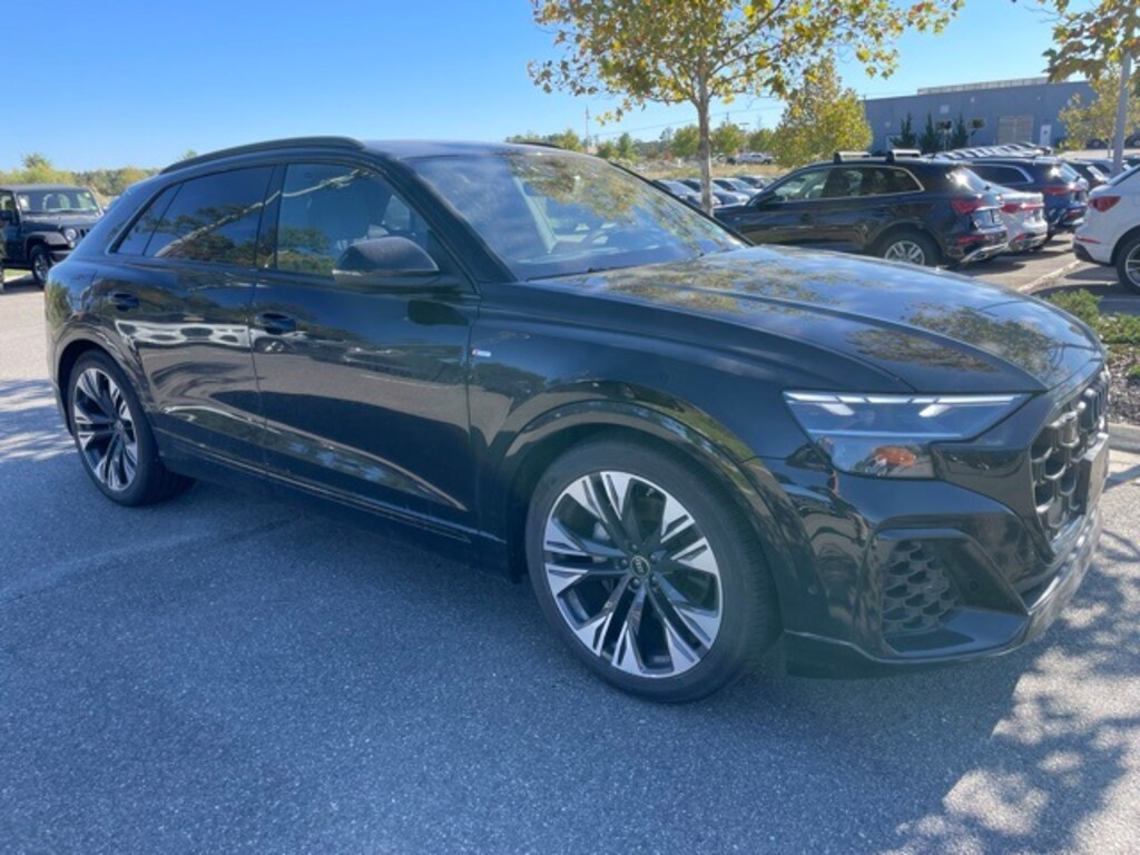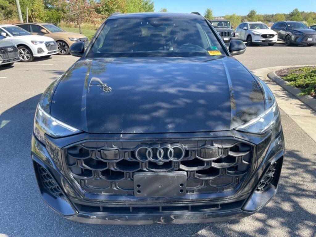 CARFAX One-Owner. Clean CARFAX. Certified. Mythos Black Metallic 2025 Audi Q8 55 Premium Plus quattro quattro 8-Speed Automatic with Tiptronic 3.0L V6 Turbocharged DOHC 24V LEV3-ULEV70 335hp 4-Zone Automatic Climate Control, 7-Pin Adapter, ABS brakes, Active Cruise Control, AM/FM radio: SiriusXM w/ 360L, Anthracite Gray Audi Rings, Audi Guard Protection Kit, Automatic temperature control, Bang & Olufsen 3D Premium Sound System, Black Exterior Trim, Black Optic Package, Comfort Adaptive Air Suspension, Compass, Control Buttons in Gloss Black w/Haptic Feedback, Convenience Package, Dark Chrome Exhaust Tips, Dual-Pane Acoustic Glass for Side Windows, Electronic Stability Control, Executive Plus Package, Exterior Parking Camera Rear, Front & Rear Doors Audi Beam-Rings, Front dual zone A/C, Front Seats w/Ventilation, Garage door transmitter: HomeLink, Heated door mirrors, Heated Front Bucket Seats, Heated front seats, Heated Rear Seats, Heated Steering Wheel, Illuminated Door Sills, Illuminated entry, LED Interior Lighting Plus Package, Low tire pressure warning, Navigation System, Navigation system: Audi MMI Navigation with Touch Response, Power Liftgate, Power moonroof: Panoramic, Power Rear Side Windows, Power Soft-Closing Doors, Premium Plus Package, Radio: Audi MMI Nav Plus w/MMI Touch Response, Rear air conditioning, Remote keyless entry, S Line Exterior, S Line Illuminated Door Sills, S Line Style Package, Top View Camera System w/Virtual 360 View, Traction control, Trailer Hitch, Wheels: 22" 5-Double-Arm Design Bicolor Finish, Wireless Phone Charging Pad.