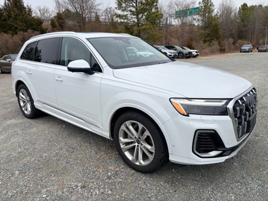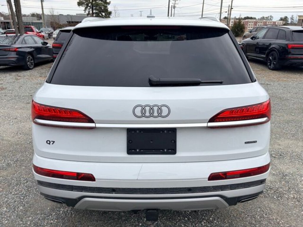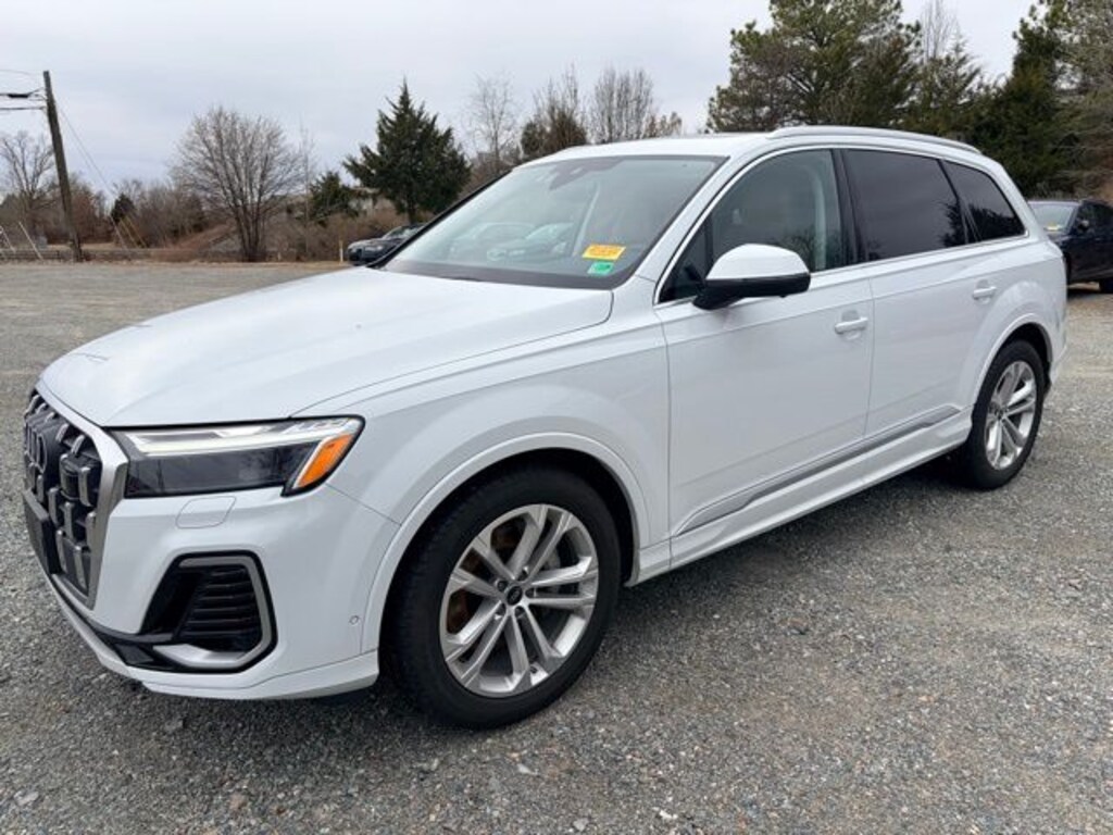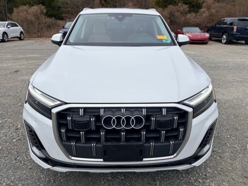 CARFAX One-Owner. Clean CARFAX. Certified. Glacier White Metallic 2026 Audi Q7 55 Premium Plus quattro quattro 8-Speed Automatic with Tiptronic 3.0L TFSI 10 Speakers, 4-Way Power Lumbar For Passenger Seat, 7-Pin Adapter, 7700 lbs Towing Capacity, Adaptive Air Suspension, AM/FM radio: SiriusXM with 360L, Automatic temperature control, Bang & Olufsen Premium Sound System with 3D Sound, Control Buttons in Gloss Black with Haptic Feedback, Dual-Pane Acoustic Glass For Side Windows, Exterior Parking Camera Rear, Four-Zone Automatic Climate Control, Front dual zone A/C, Garage door transmitter: HomeLink, Heated Front Bucket Seats, Heated Rear Seats, Heated Steering Wheel, Illuminated Door Sills, LED Interior Lighting Plus Package, Navigation system: Audi MMI Navigation plus with Touch Response, Power Liftgate, Power moonroof: Panoramic, Power Soft-Closing Doors, Premium Plus Package, Radio: Audi Sound System, Rear air conditioning, Rear Door/Side Windows and Tailgate Sunshades, Top View Camera System with Virtual 360 View, Trailer Hitch, Ventilation For Front Seats, Wheels: 20" 5-Double-Spoke.