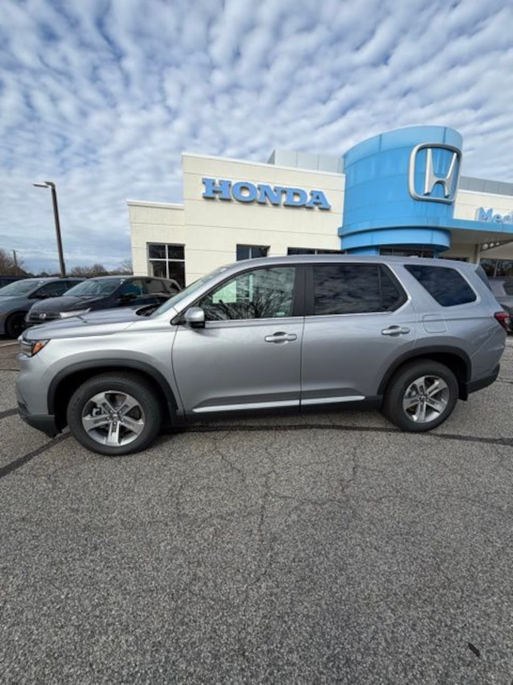 New 2025 Honda Pilot EX-L AWD in LUNAR SILVER with Gray leather interior, powered by a 3.5L V6 DOHC 24V engine paired with a 10-speed automatic transmission and All-Wheel Drive. This versatile SUV combines power, comfort, and advanced technology, Price includes $1495 Destination and Handling, $249 Splash Guards, $795 Processing Fee. Price does not include taxes, title, license and government fees.