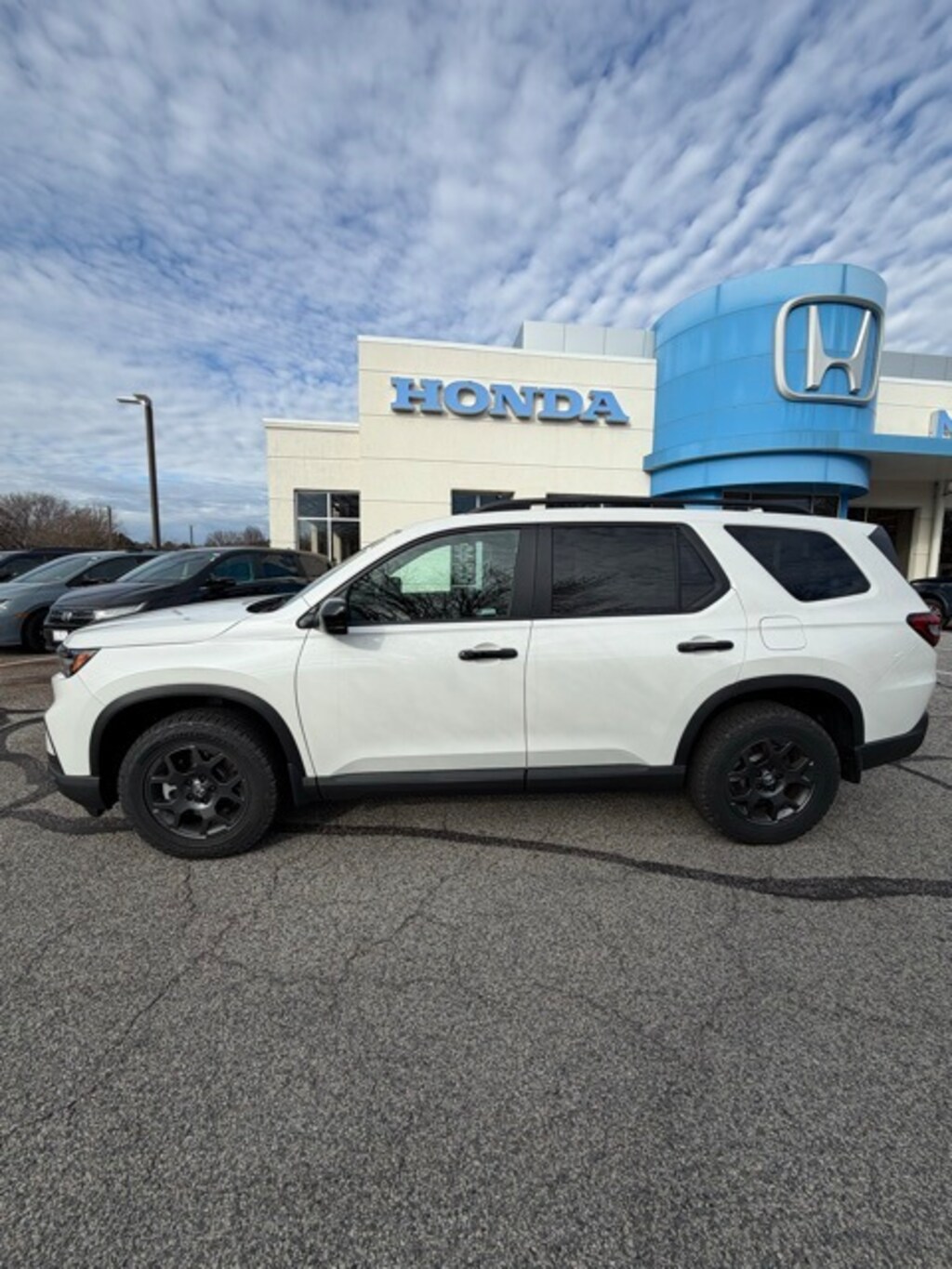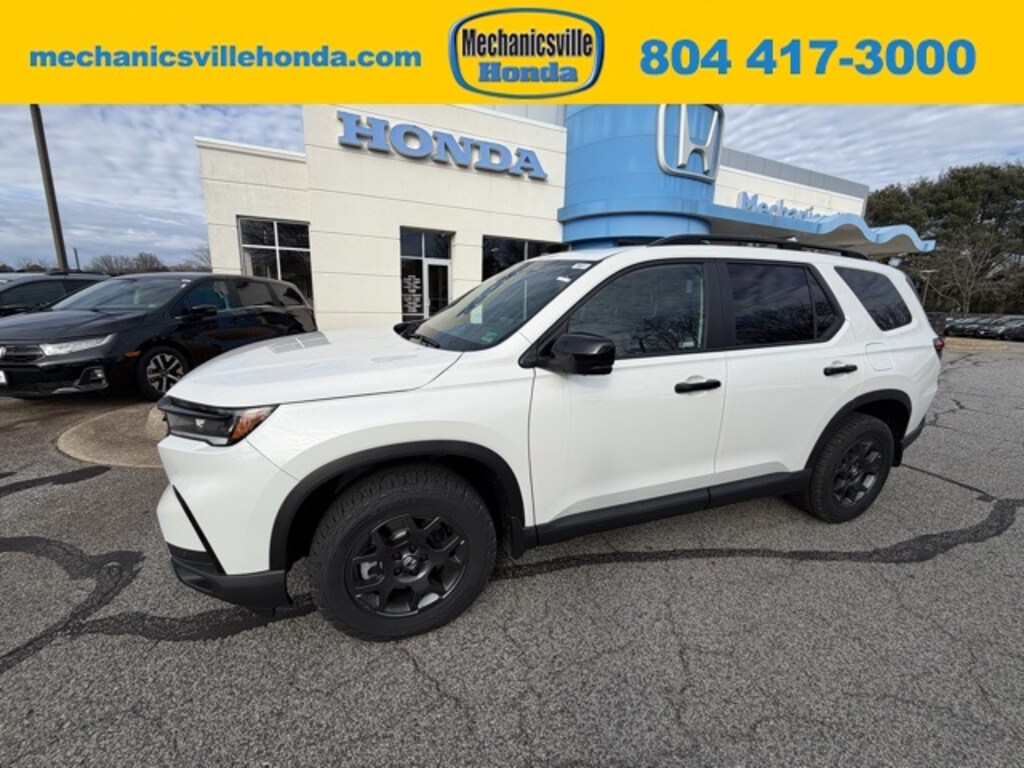 New 2025 Honda Pilot TrailSport AWD in PLATINUM WHITE with black interior, powered by a 3.5L V6 DOHC 24V engine paired with a 10speed automatic transmission and AllWheel Drive (AWD). This rugged family SUV offers capability for everyday driving and weekend adventures with standard AWD and offroadready TrailSport enhancements like skid plates and integrated drive modes including Trail and Sand. Conveniently available at Mechanicsville Honda, proudly serving Mechanicsville, Henrico, Midlothian, South Chesterfield, and Hanover. In stock and ready for a test drive.