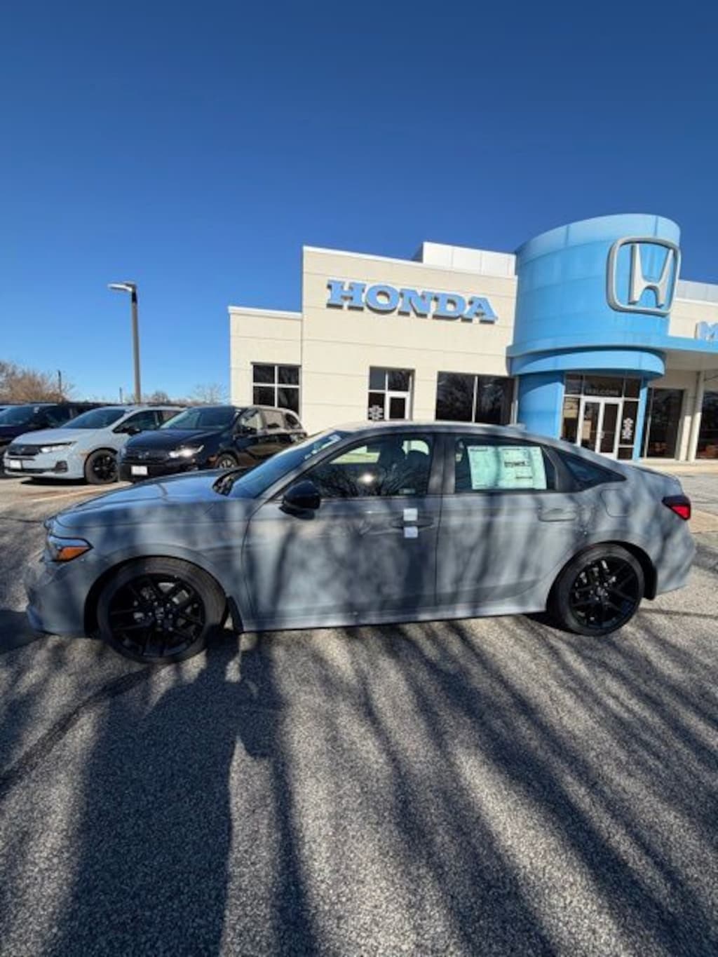 New 2026 Honda Civic Sport in Urban Gray Pearl with black leather interior, powered by a 2.0L I4 DOHC engine and CVT automatic transmission with Front-Wheel Drive. This fuel-efficient sedan delivers an impressive 31 MPG city / 39 MPG highway, making it ideal for daily commuting.