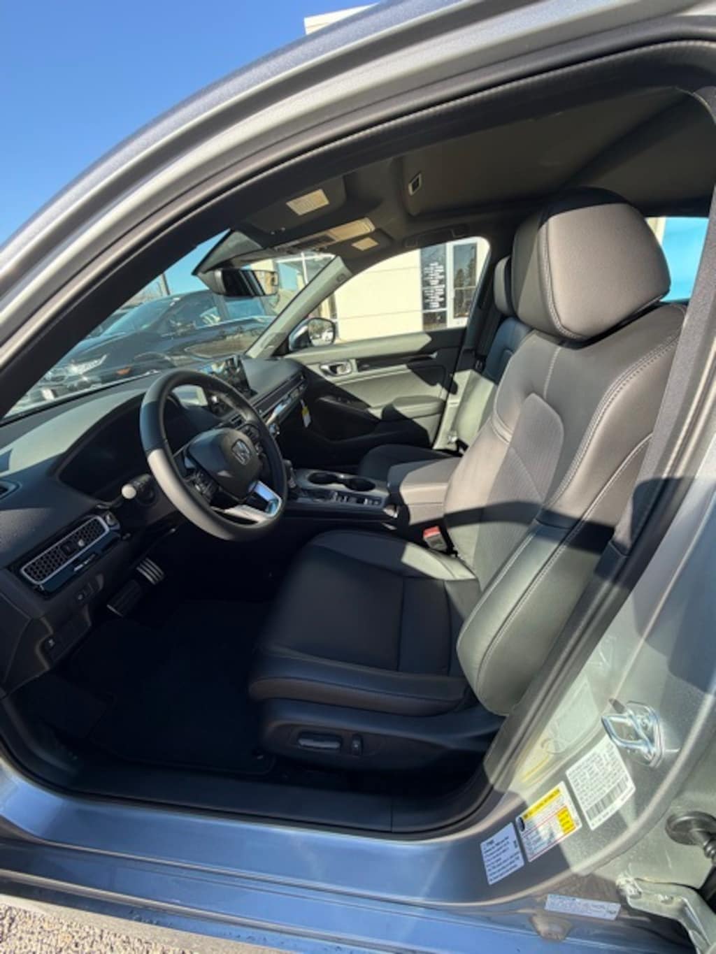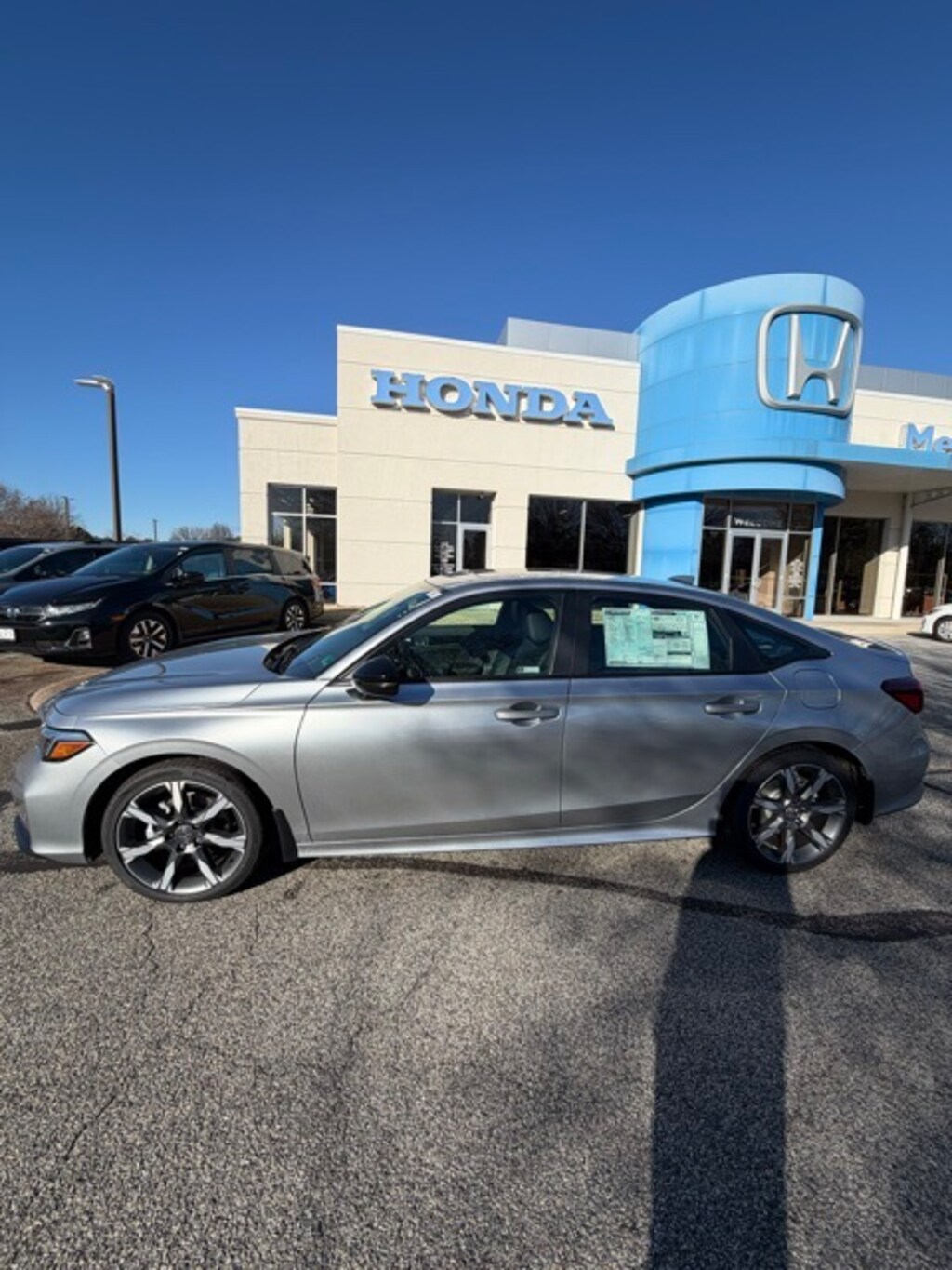 New 2026 Honda Civic Hybrid Sport Touring FWD in Solar Silver with Black interior, powered by a 2.0L 16V DOHC hybrid engine paired with an eCVT automatic transmission. This fuel-efficient hybrid sedan delivers an impressive 50 MPG city / 47 MPG highway, making it an excellent option for daily commuting.