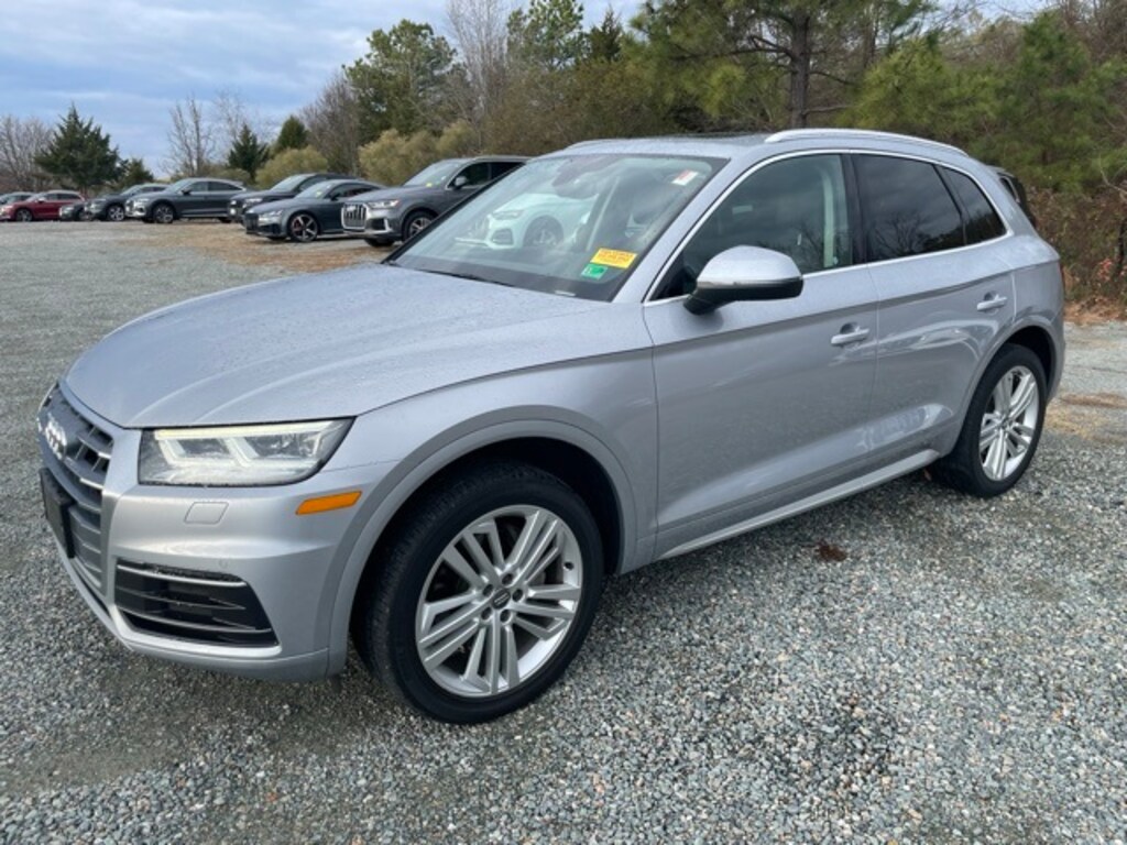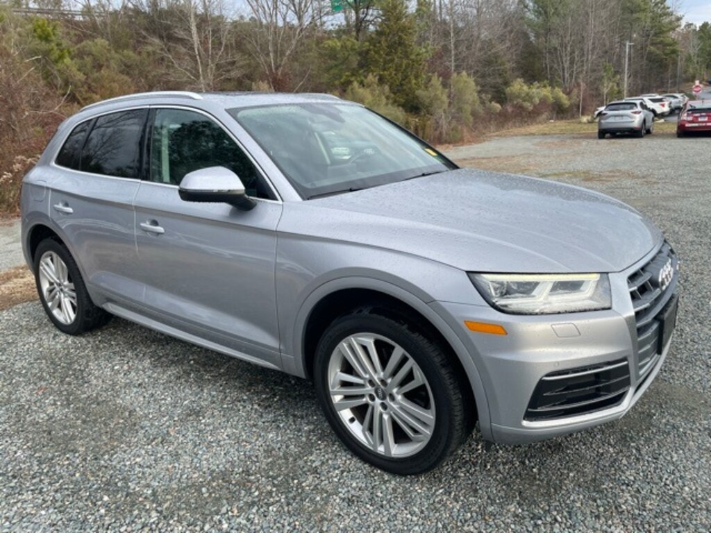 Florett Silver Metallic 2019 Audi Q5 2.0T Premium Plus quattro quattro 7-Speed Automatic S tronic 2.0L TFSI Black w/Leather Seating Surfaces, 5.302 Axle Ratio, All-Weather Floor Mats, Audi Advanced Key, Audi Beam-Rings, Audi Connect PRIME & PLUS, Audi Phone Box, Audi Pre Sense Rear, Audi Side Assist, Audi smartphone interface (Apple CarPlay/Android Auto), Audi Virtual Cockpit, Auto-Dimming Power Folding Mirrors, Automatic temperature control, Bang & Olufsen Sound System w/3D Sound, Black Privacy Trunk Cover, Cold Weather Package, Convenience Package, Driver Seat Memory, Exterior Parking Camera Rear, Front dual zone A/C, Garage door transmitter: HomeLink, Heated 8-Way Power Front Bucket Seats, Heated front seats, Heated Rear Seats, Heated Steering Wheel, Leatherette Covered Center Console & Door Armrests, LED Headlights, Navigation System, Panoramic Sunroof, Parking System Plus (Front/Rear Acoustic Sensors), Power Liftgate, Premium Plus Package, Radio: Audi MMI Navigation Plus w/MMI Touch, Rear air conditioning, SiriusXM All Access Service, Stainless Steel Door Sills, USB Charge Ports for Rear Seats, Wheels: 20" 5-Segment-Spoke Design.