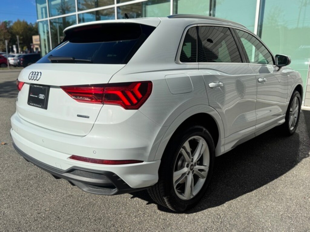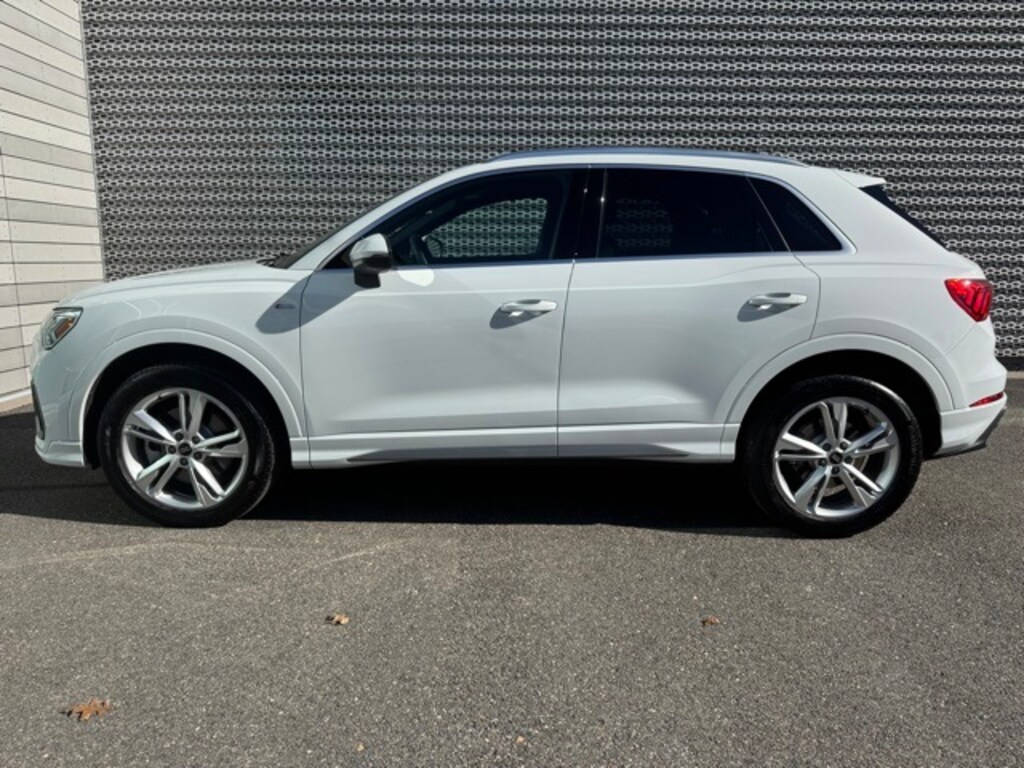 CARFAX One-Owner. Clean CARFAX. Certified. Glacier White Metallic 2024 Audi Q3 Premium S Line quattro quattro 8-Speed Automatic with Tiptronic 2.0L 4-Cylinder TFSI 10 Speakers, 19" Wheel Package, 3.53 Axle Ratio, Alarm w/Motion Sensor, AM/FM radio, Audi Advanced Key, Audi Beam-Rings, Audi Guard Protection Kit, Audi smartphone interface (Apple CarPlay/Android Auto), Auto-Dimming Power-Folding Exterior Mirrors, Auto-Dimming Rear-View Mirror, Automatic temperature control, Convenience Package, Driver Seat Memory, Exterior Parking Camera Rear, Front dual zone A/C, Garage Door Opener (HomeLink), Heated Front Bucket Seats, LED Interior Lighting Package, Power Liftgate, Power moonroof: Panoramic, Radio: Audi Sound System, Rear air conditioning, SiriusXM, Wheels: 19" 5-Double-Spoke Dynamic Design, Wireless Phone Charging Pad.