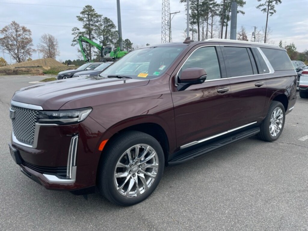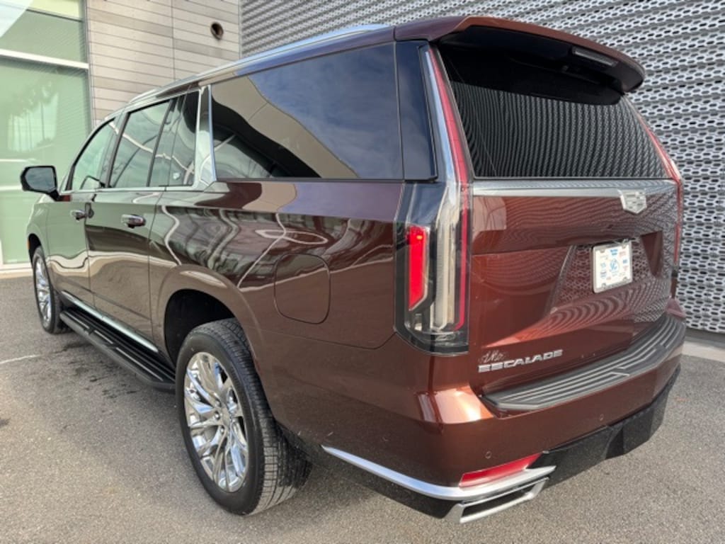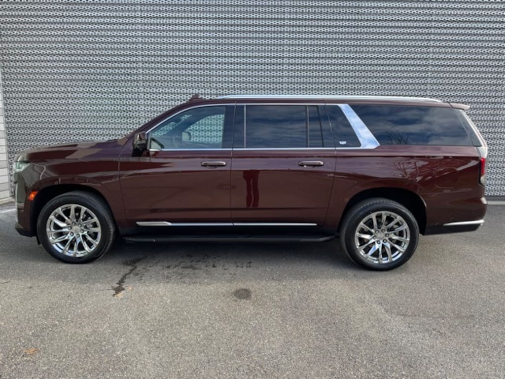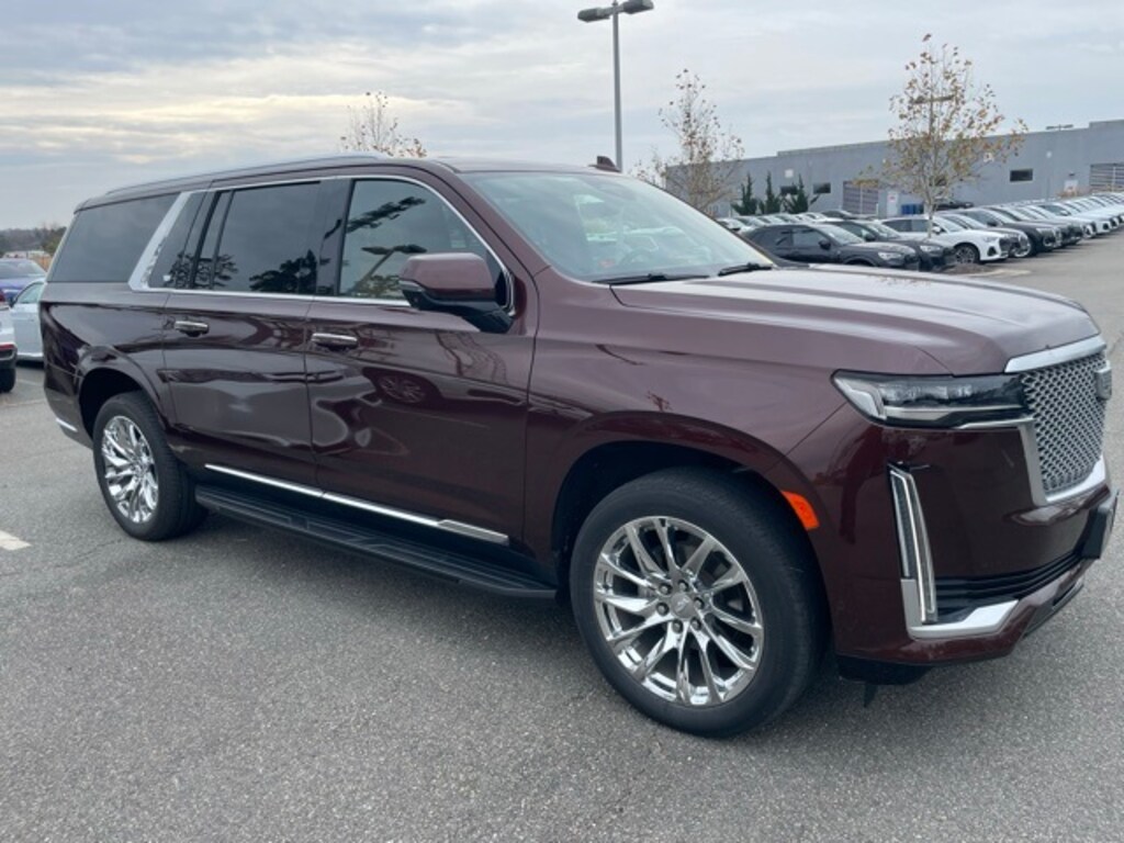CARFAX One-Owner. Mahogany Metallic 2022 Cadillac Escalade ESV Premium 4WD 10-Speed Automatic with Overdrive 6.2L V8 4WD, 16.9" Diagonal OLED Infotainment Screen, 2-Presets Memory For Driver Seat Adjuster, 3.23 Axle Ratio, 8-Way Power Driver Seat Adjuster, 8-Way Power Front Passenger Seat Adjuster, Adaptive Cruise Control, AKG Studio 19-Speaker Audio System, AM/FM radio: SiriusXM with 360L, Apple CarPlay/Android Auto, Automatic Seat Belt Tightening, Automatic Stop/Start, Automatic temperature control, Bright Sport Mesh Grille (LPO), Door Lock & Latch Shields, Enhanced Automatic Emergency Braking, Enhanced Automatic Parking Assist, Front dual zone A/C, Garage door transmitter, Glass Breakage Sensor, HD Radio, Heated & Ventilated Driver & Front Passenger Seats, Heated Driver & Front Passenger Seats, Heated rear seats, Heated steering wheel, Lane Change Alert w/Side Blind Zone Alert, Mechanical Limited-Slip Differential, Monochrome Cadillac Emblems (LPO), Navigation System, Power Liftgate, Power Panoramic Tilt-Sliding Sunroof, Preferred Equipment Group 1SB, Puddle Lamps w/Cadillac Crest (LPO), Radiant Package (LPO) (DISC), Radio: AM/FM/SiriusXM w/Navigation, Rear air conditioning, Rear Camera Mirror, Rear Camera Mirror Washer, Rear Cross Traffic Alert, Reconfigurable Full-Color Head-Up Display, Reverse Automatic Braking, Running Board Assist Steps, SiriusXM w/360L, Start/Stop System Disable Button, Teen Driver, Theft-Deterrent Alarm System, Vehicle Inclination Sensor, Vehicle Interior Movement Sensor, Ventilated front seats, Wheels: 22" 12-Spoke Chrome Alloy (LPO), Wireless Apple CarPlay/Wireless Android Auto.