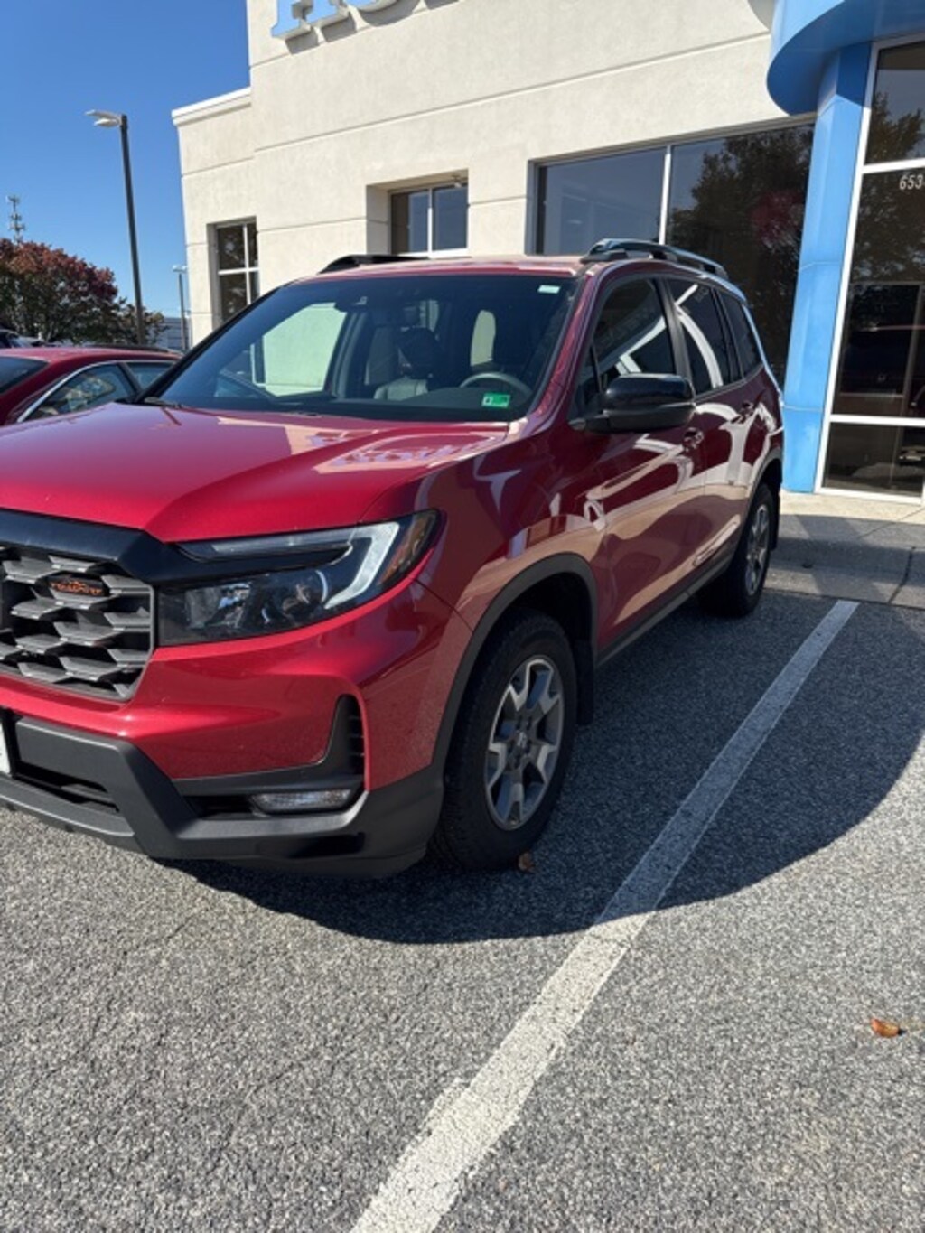 Red 2023 Honda Passport TrailSport AWD 9-Speed Automatic 3.5L V6 24V SOHC i-VTEC ***CARFAX 1 OWNER***, ***Heated Seats***, BLUETOOTH HANDS-FREE, Back-Up Camera***, Power Windows, Power Doorlocks, 4-Wheel Disc Brakes, ABS brakes, Apple CarPlay/Android Auto, Auto-dimming Rear-View mirror, Blind Spot Information (BSI) System warning, Dual front impact airbags, Front dual zone A/C, Front fog lights, Heated door mirrors, Heated Front Bucket Seats, Occupant sensing airbag, Overhead airbag, Power door mirrors, Power driver seat, Power moonroof.