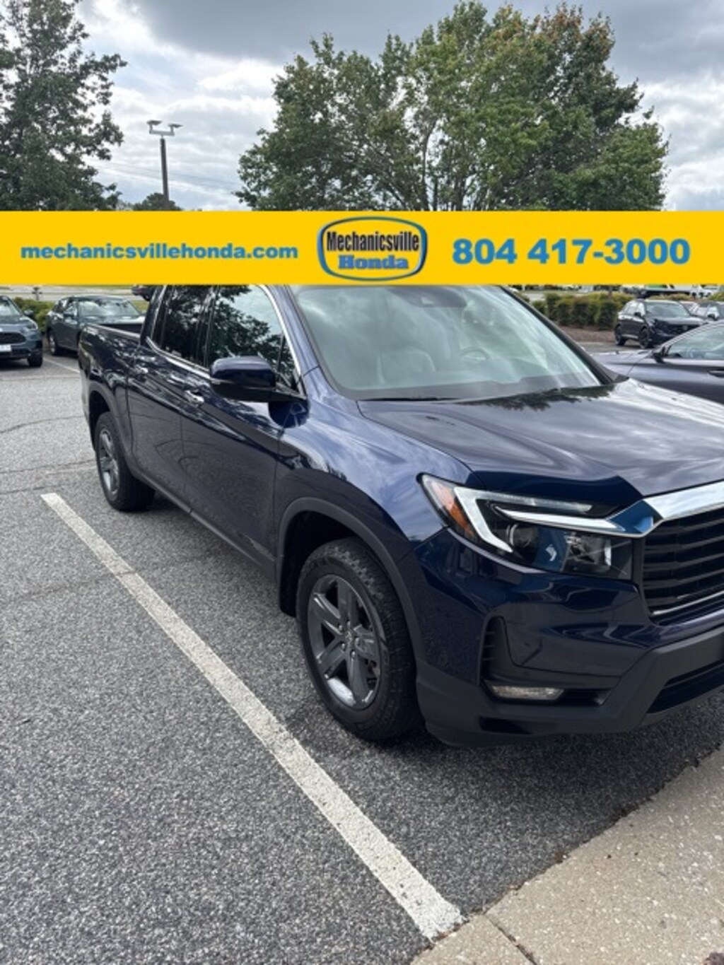 Obsidian Blue Pearl 2023 Honda Ridgeline RTL-E AWD 9-Speed Automatic 3.5L V6 SOHC i-VTEC 24V ***CARFAX 1 OWNER***, ***Accident Free CarFax***, NAVIGATION, ***Heated Seats***, Gray w/Leather Seat Trim, ABS brakes, Bluetooth® Hands-Free Link, Dual front impact airbags, Front dual zone A/C, Honda Satellite-Linked Navigation System, Low tire pressure warning, Occupant sensing airbag, Power moonroof.