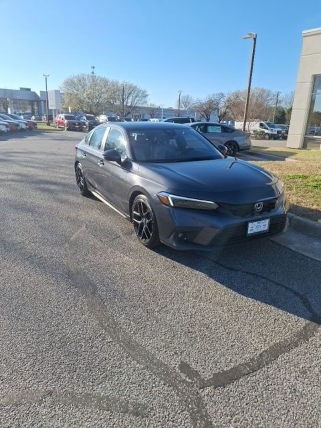 Meteorite Gray Metallic 2024 Honda Civic Sport Touring FWD CVT 1.5L I4 DOHC 16V ***CARFAX 1 OWNER***, ***Accident Free CarFax***, NAVIGATION, ***Heated Seats***, BLUETOOTH HANDS-FREE, Back-Up Camera***, Gray w/Leather-Trimmed Seating Surfaces, 4-Wheel Disc Brakes, ABS brakes, Apple CarPlay/Android Auto, Blind Spot Information (BSI) System warning, Brake assist, Electronic Stability Control, Front dual zone A/C, Front fog lights, Heated door mirrors, Lane departure: Lane Keeping Assist System (LKAS) active, Low tire pressure warning, Navigation system: Honda Satellite-Linked Navigation System, Occupant sensing airbag, Power door mirrors, Power driver seat, Power moonroof.