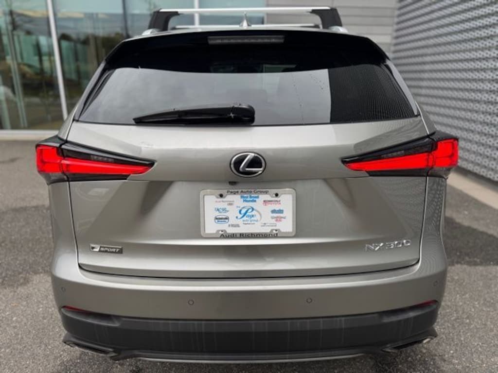 CARFAX One-Owner. Atomic Silver 2019 Lexus NX 300 F Sport AWD 6-Speed Automatic 2.0L 16V DOHC 2 Additional Speakers, ABS brakes, Accessory Package, Active Cruise Control, Active Sound Control, Alloy Wheel Locks, Aluminum Pedals & Foot Rest, AM/FM radio: SiriusXM, Automatic temperature control, Axle Ratio: 4.117, Black Headliner, Blind Spot Monitor w/Rear Cross Traffic Alert, Cargo Net, Carpet Cargo Mat, CD player, Compass, Door Edge Guards, Driver's Seat Memory, Electrochromic Mirrors, Electrochromic Rearview Mirror w/HomeLink, Electronic Stability Control, Enform Wi-Fi, Enhanced LED Daytime Running Lights, Exterior Parking Camera Rear, F SPORT Door Scuff Plates, F SPORT NuLuxe Seat Trim, F SPORT Package w/All Season Tires, F SPORT Premium Package, F SPORT Side & Rear Badging, Front & Rear Performance Rods, Front dual zone A/C, Front Fog & Driving Lamp, Heated & Ventilated Front Seats, Heated door mirrors, High Clearance Lamp, Illuminated Door Sills, Illuminated entry, Key Gloves, Lexus Enform App Suite 2.0, Lexus Enform Destination Assist, Lexus Insider, Low tire pressure warning, Metallic Sport Trim, Navigation System, Power Tilt & Slide Moonroof/Sunroof, Power Tilt & Telescopic Steering Column, Radio: AM/FM/CD Lexus Display Audio, Remote keyless entry, Roof Rack Cross Bars, SD Navigation System, Sport Heated Steering Wheel w/Paddle, Sport Tuned Suspension, Traction control, Turbo Boost Gauge and G-Meter, Unique Front Bumper w/Mesh Grille Insert, Unique Gear Shift, Wheels: 18" x 7.5" F SPORT Split-5-Spoke Alloy.