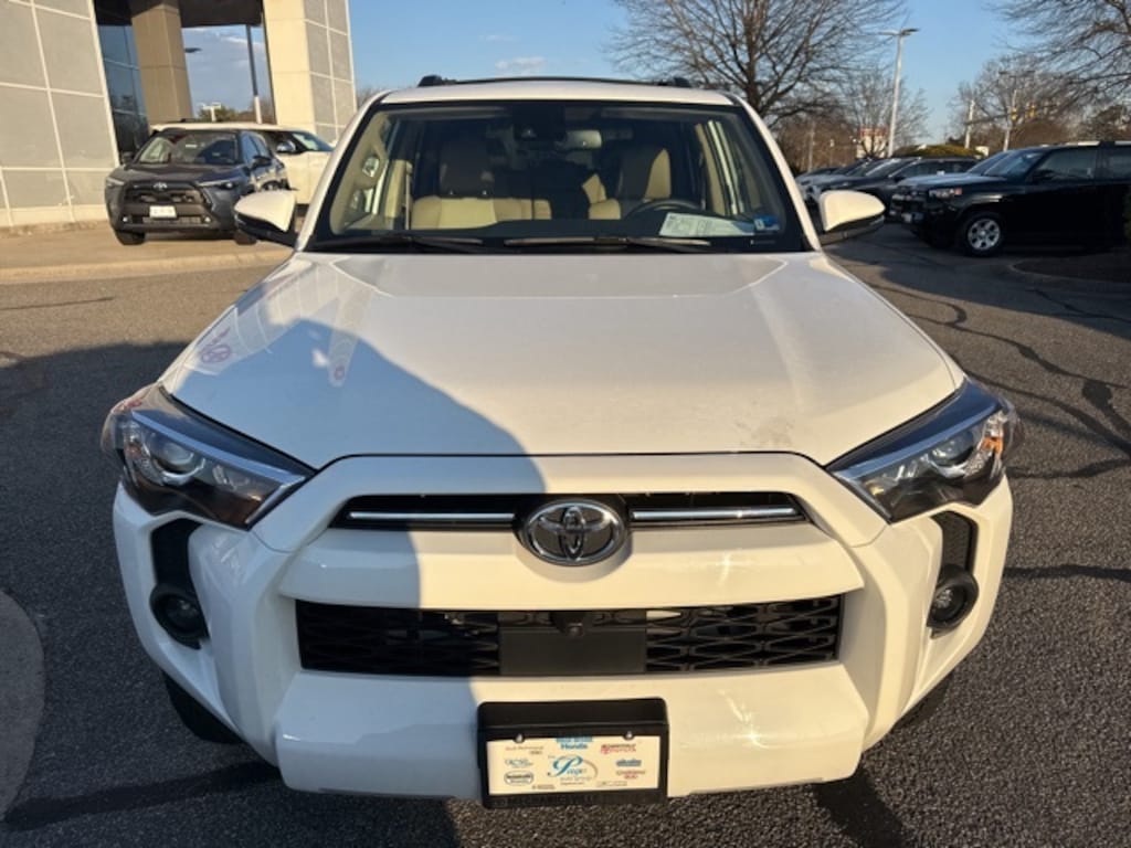 This 2022 Toyota 4Runner in White features: Blind Spot Monitor (BSM), Garage Door Opener, Moonroof Package, Moonroof w/Tilt Up & Slide, Outside Rear View Mirror, Panoramic Back Monitor, Roof Rack Cross Bars (PPO) (TMS), SofTex-Trimmed 50/50 Split Fold-Flat 3rd Row, SR5 Premium Plus Package w/SofTex, Trunk Carpet.