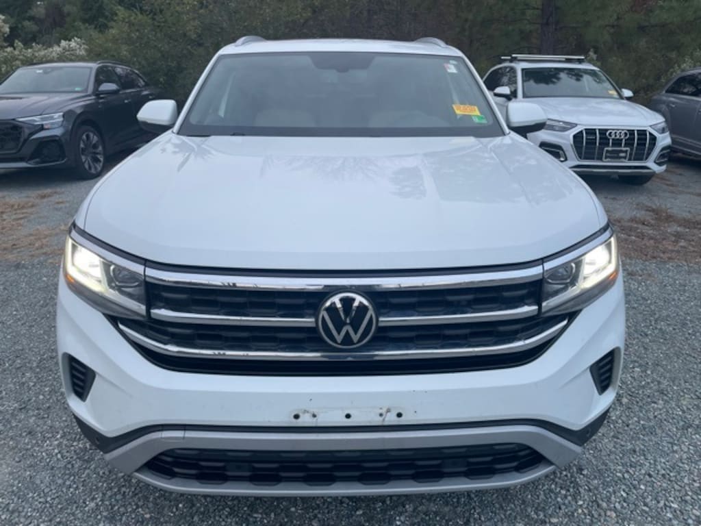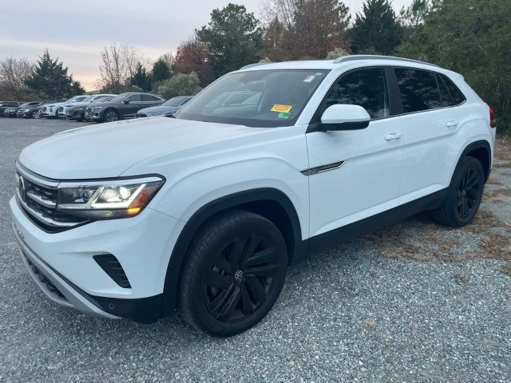 CARFAX One-Owner. Clean CARFAX. Pure White 2022 Volkswagen Atlas Cross Sport 2.0T SE w/Technology AWD 8-Speed Automatic with Tiptronic 2.0L TSI 3.60 Axle Ratio, 6 Speakers, AM/FM radio: SiriusXM with 360L, Auto-dimming Rear-View mirror, Automatic temperature control, Black Wheel Package, Exterior Parking Camera Rear, Front dual zone A/C, Heated Comfort Front Bucket Seats, Heated front seats, Panoramic Sunroof Package, Perforated V-Tex Leatherette Seating Surfaces, Power Tilting & Sliding Panoramic Sunroof, Privacy Cover, Radio: MIB3 Composition Media w/8" Touchscreen, Rubber Mats (Set of 4), Wheels: 20" x 8J 5-Spoke Black Painted Alloy.
